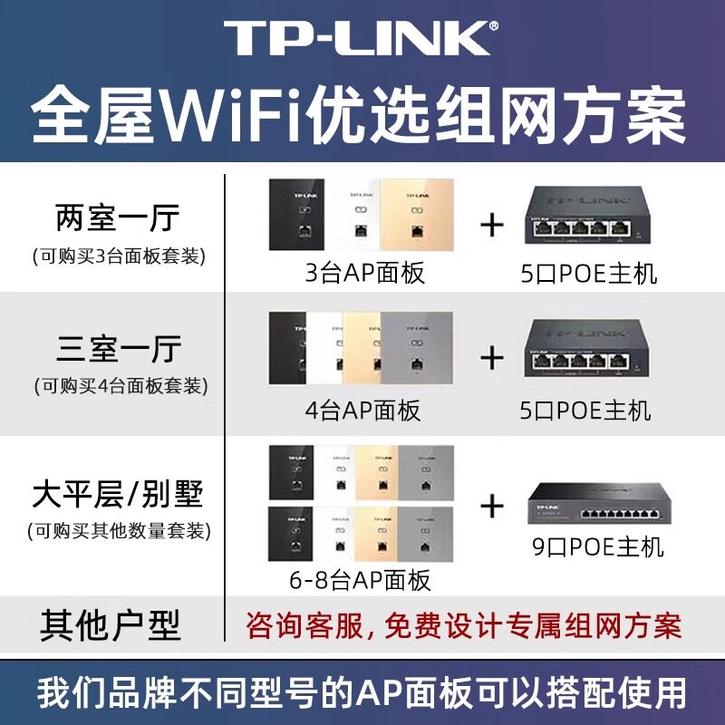 📚 tplink无线ap面板千兆墙壁式路由器POE供电86型网络插座AC别墅家用5G双频1500M全屋wifi6覆盖组网套装AX3000