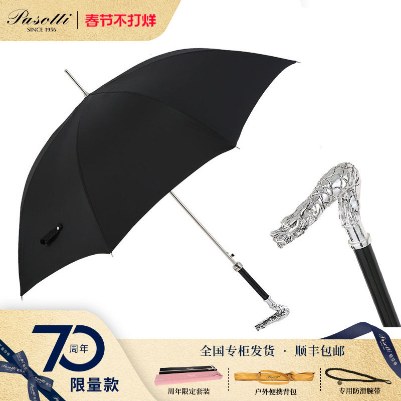 📚 Pasotti意大利手工定制黑色伞面龙头金属手柄长柄晴雨伞礼盒装