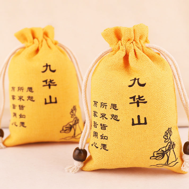 📚 九华山亚麻袋棉麻锦囊首饰包装收纳袋文玩荷花抽绳袋束口袋礼品袋