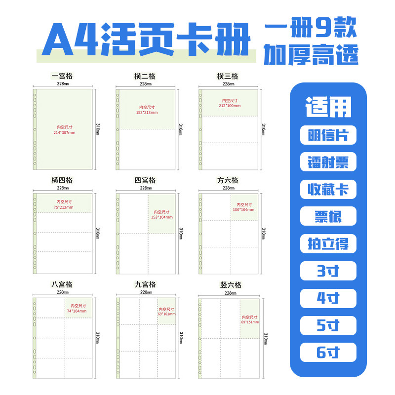 📚 卡册收纳册a4内页加厚活页拍立得相册一宫四宫九宫格明信片明星小卡收藏票夹卡牌镭射票小马莉哪吒追星小饭圈