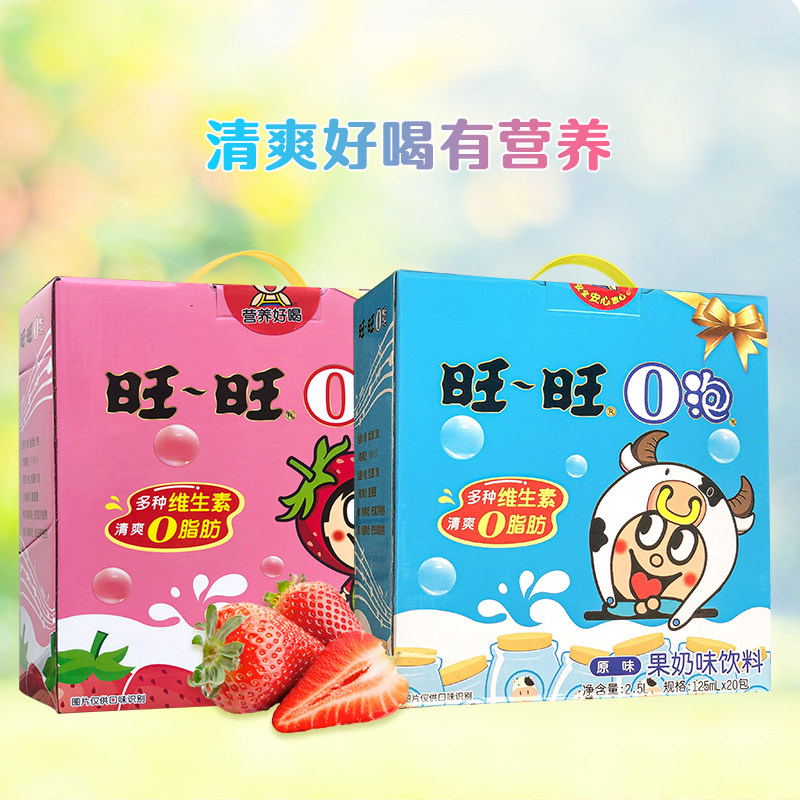 📚 旺旺旺仔牛奶O泡草莓味果奶味饮料125ml*20盒儿童早餐礼盒整箱奶