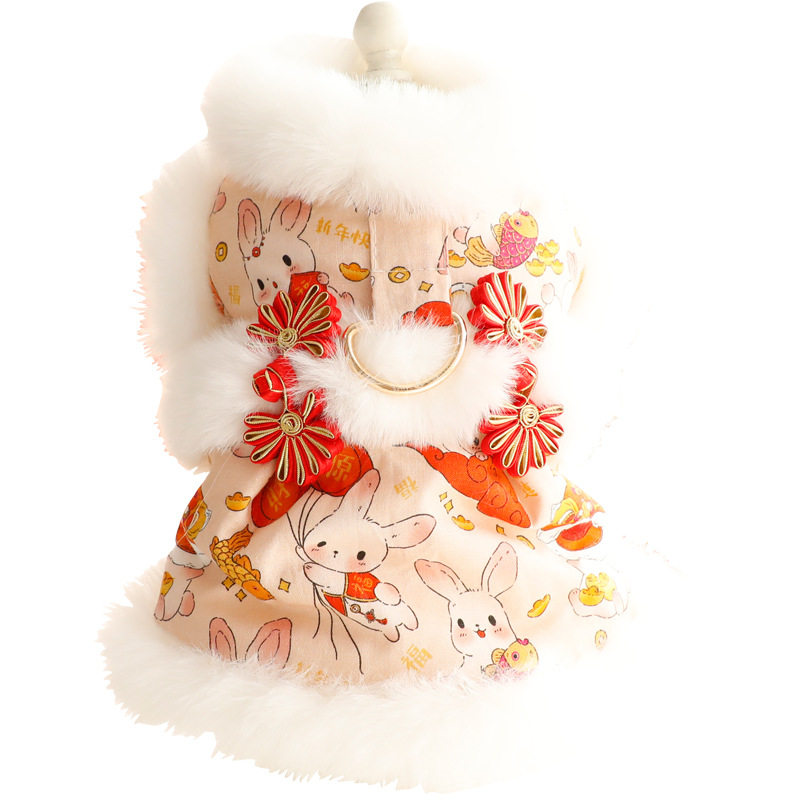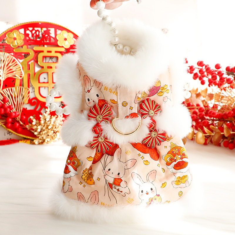 📚 狗狗衣服秋冬装猫咪公主棉衣唐装毛绒新年喜庆小型犬泰迪比熊衣服