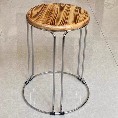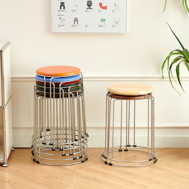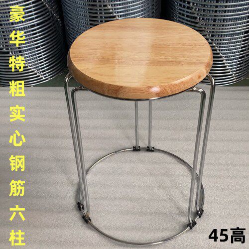 📚 实木圆凳子家用可叠放圆椅套凳铁艺宿舍餐厅成人加厚钢筋餐凳时尚