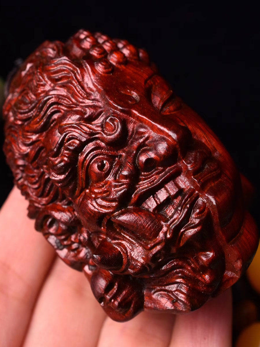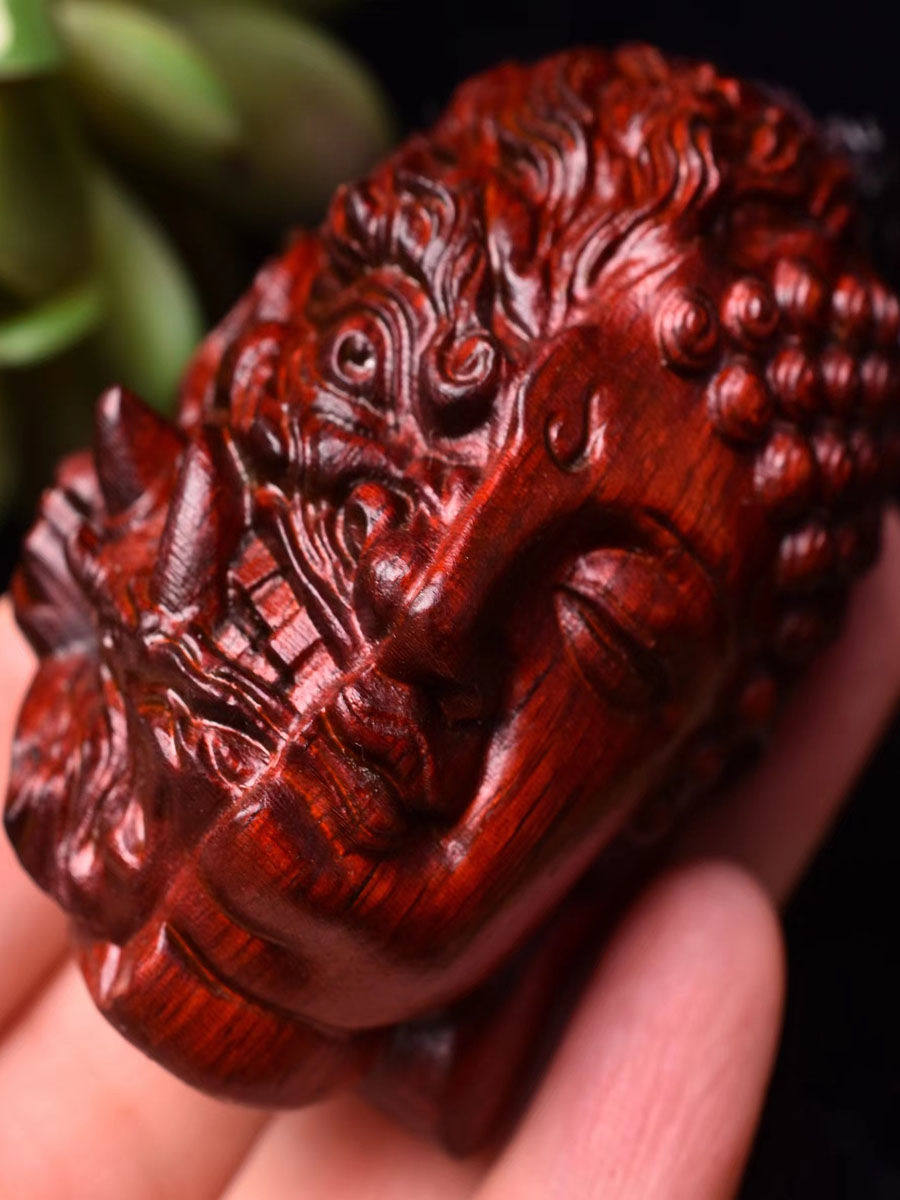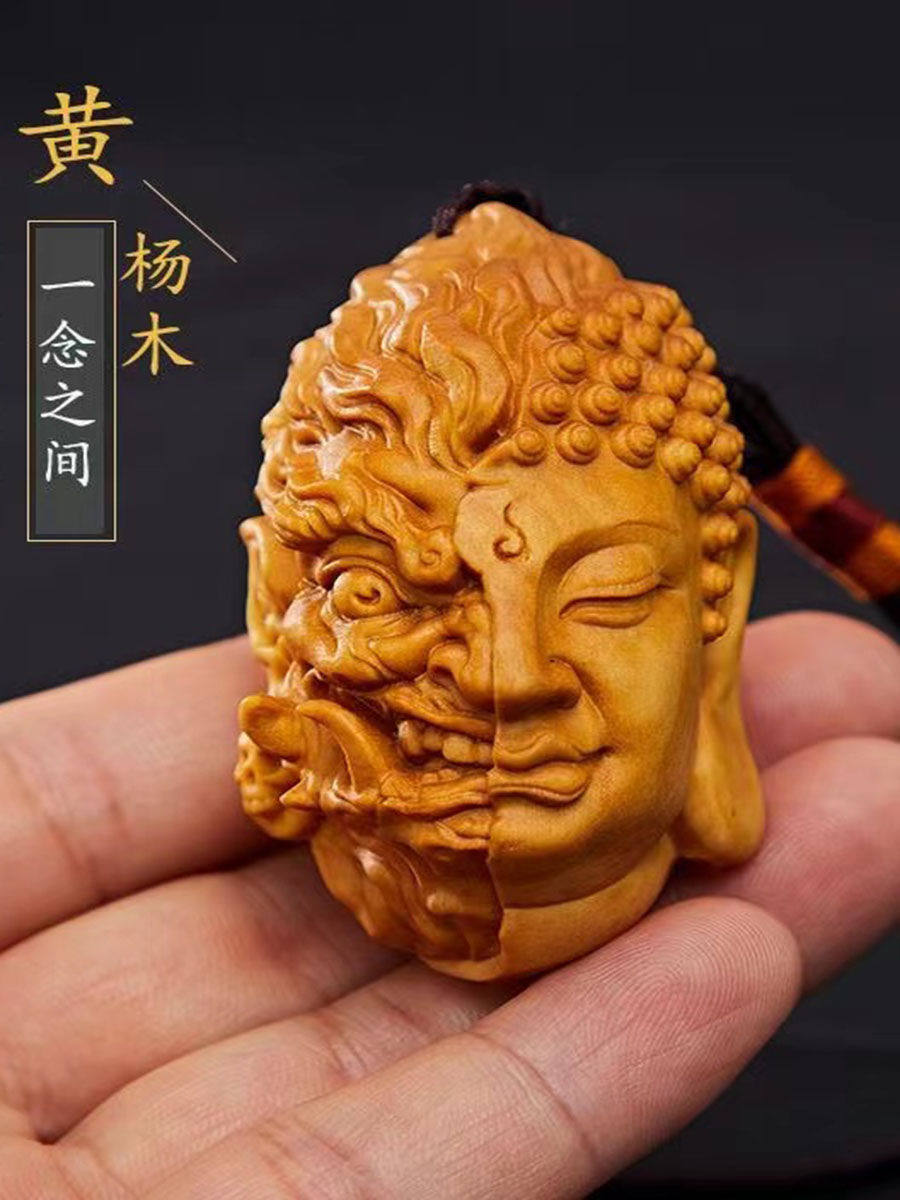 📚 小叶紫檀善恶佛魔一念之间手把件文玩黄杨木挂件红木随身木雕佛头