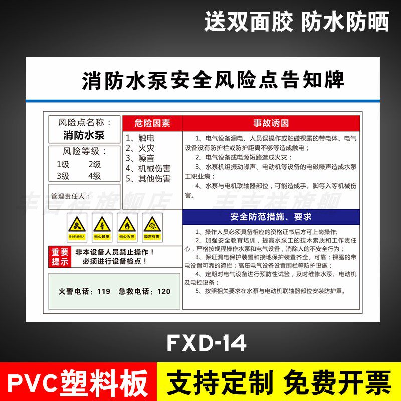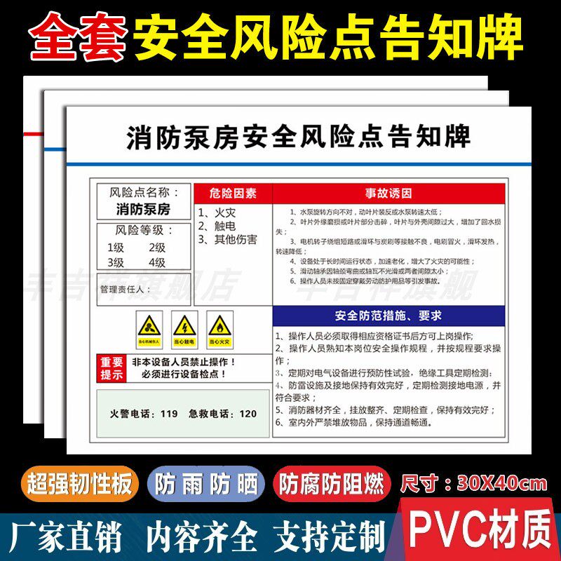 📚 消防泵房安全风险点警示牌标识标牌消防水泵房配电房危险告知牌卡岗位机器车间仓库危险源预防措施标示标志