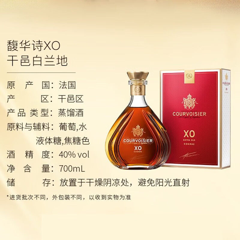 📚 馥华诗XO干邑白兰地礼盒装拿破仑蒸馏酒调酒洋酒法国进口三得利