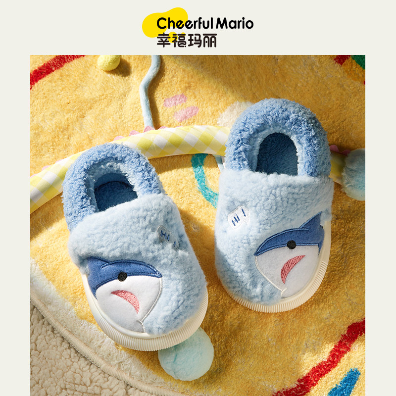 📚 鲨鱼儿童棉鞋包跟冬季男童拖鞋室内防滑宝宝棉拖鞋小童保暖家居鞋