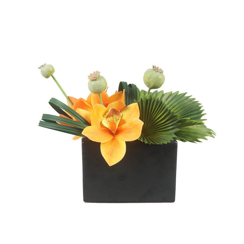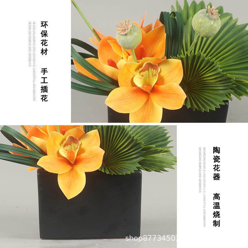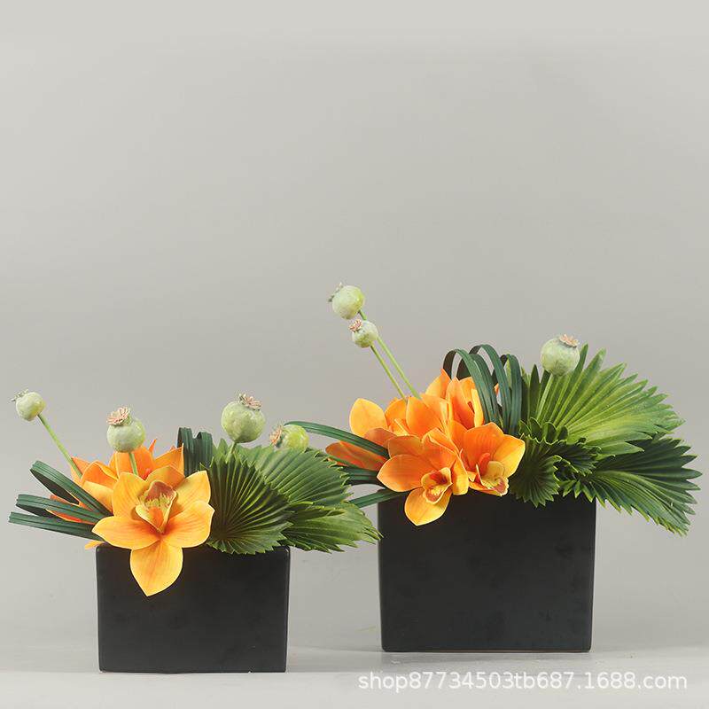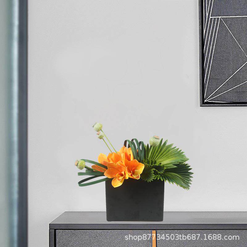 📚 新中式日式橙色仿真花艺套装售楼部吧台洽谈桌茶几托盆餐厅摆件设