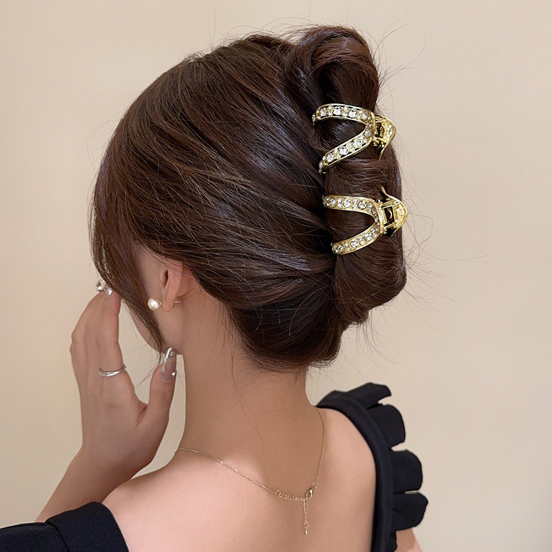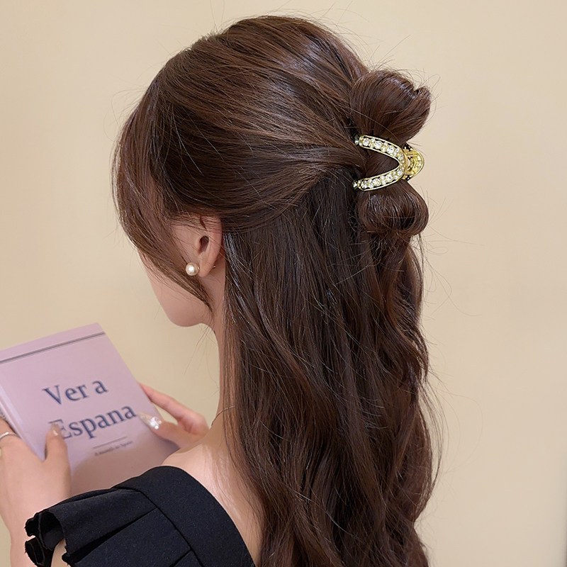 📚 高马尾固定神器抓夹女后脑勺半扎发头饰高级感v型三角发夹鲨鱼夹