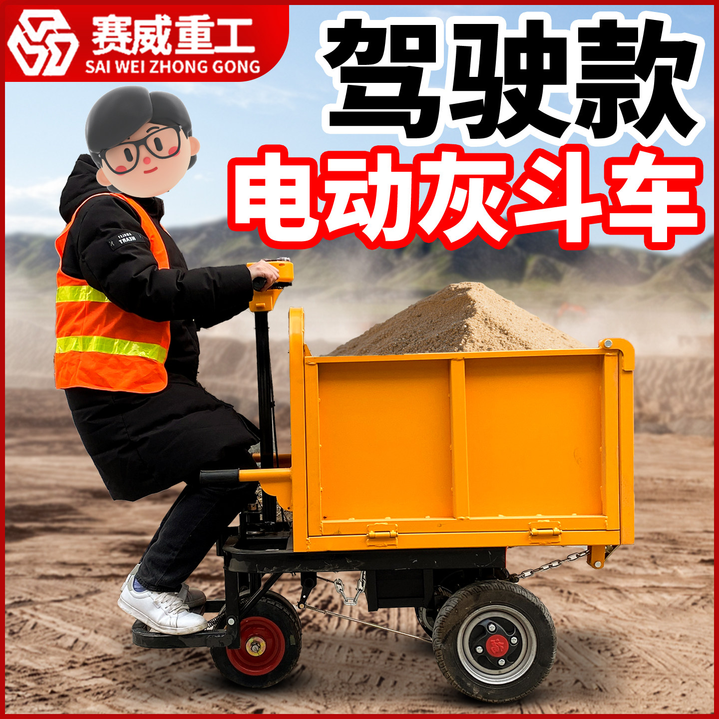📚 建筑工地电动手推车三轮车砂浆灰斗车拉粪搬运养殖运输平板翻斗车