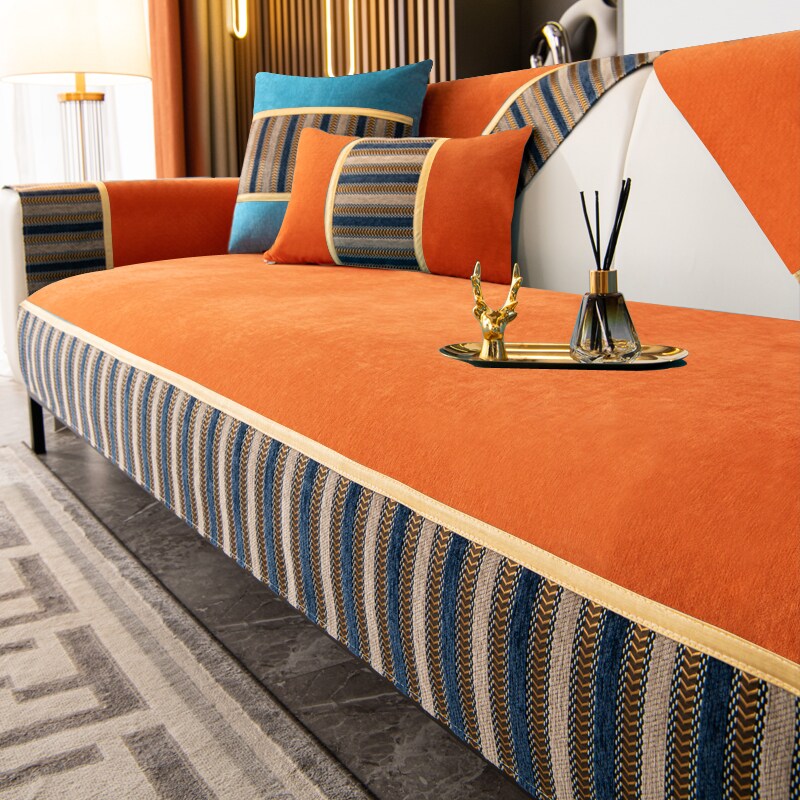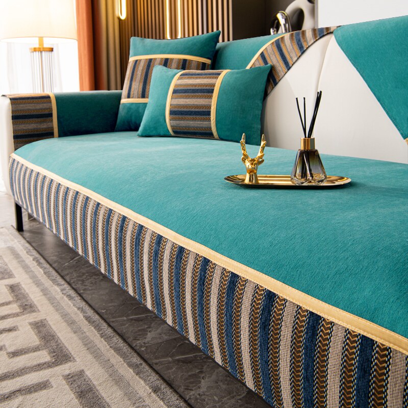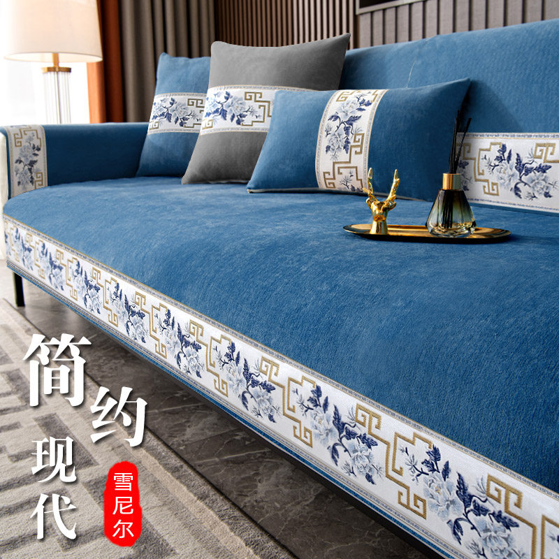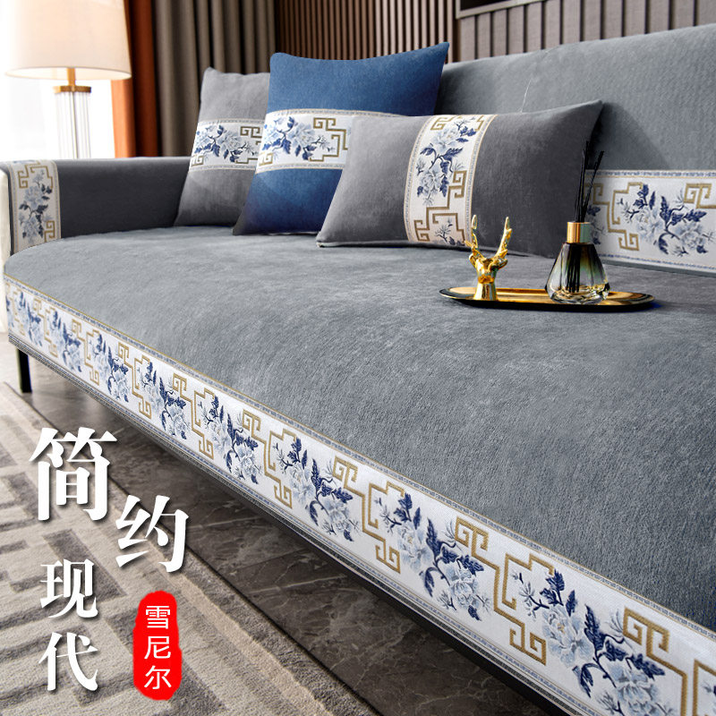 📚 新中式雪尼尔沙发垫四季通用防滑加厚坐垫子实木沙发套罩盖巾新款