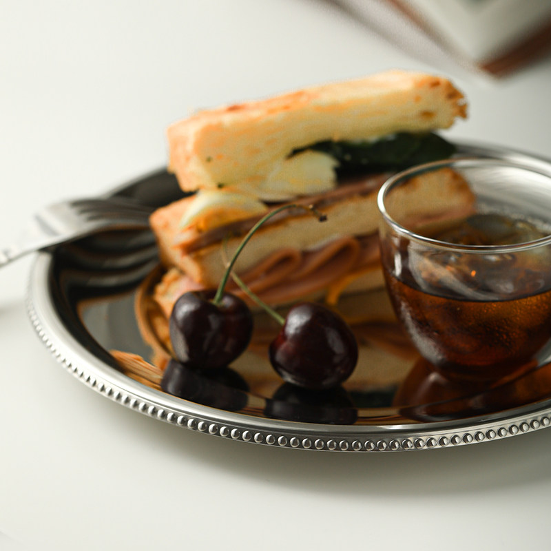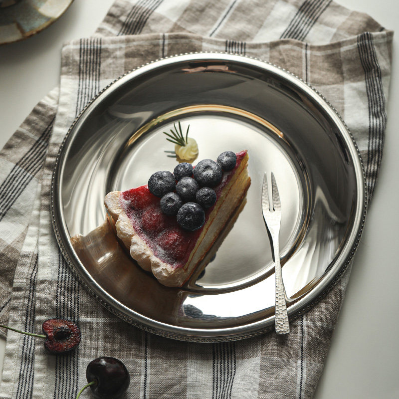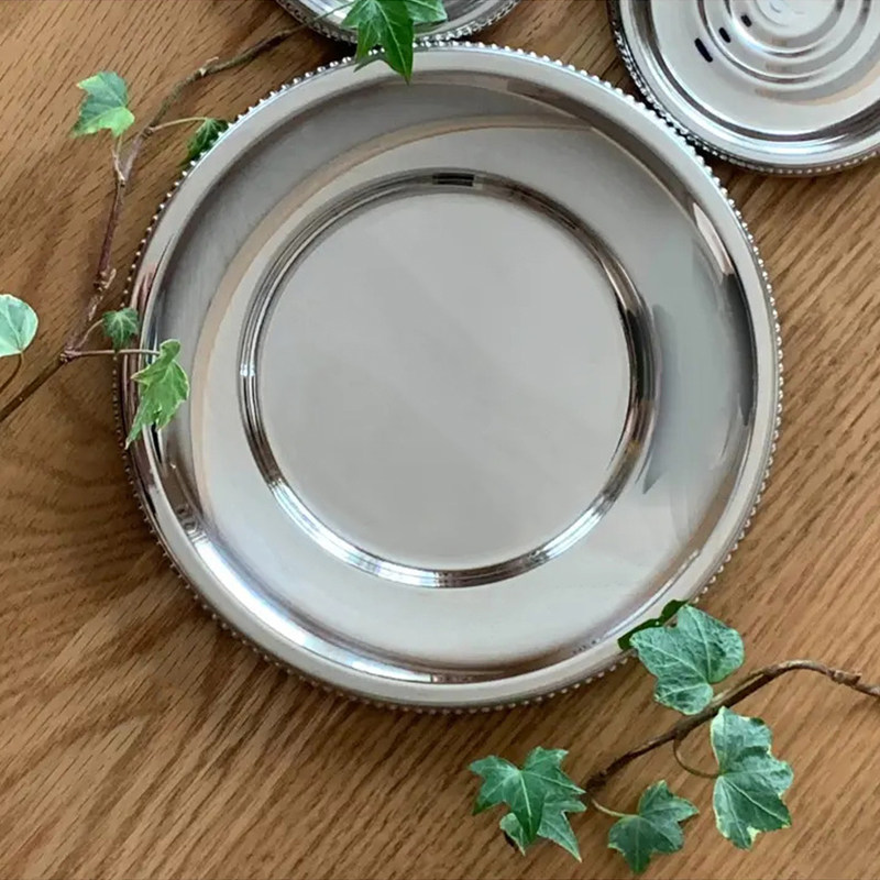 📚 玉虎堂制作所日本进口不锈钢盘子感圆形餐盘家用ins早餐盘