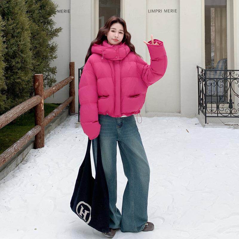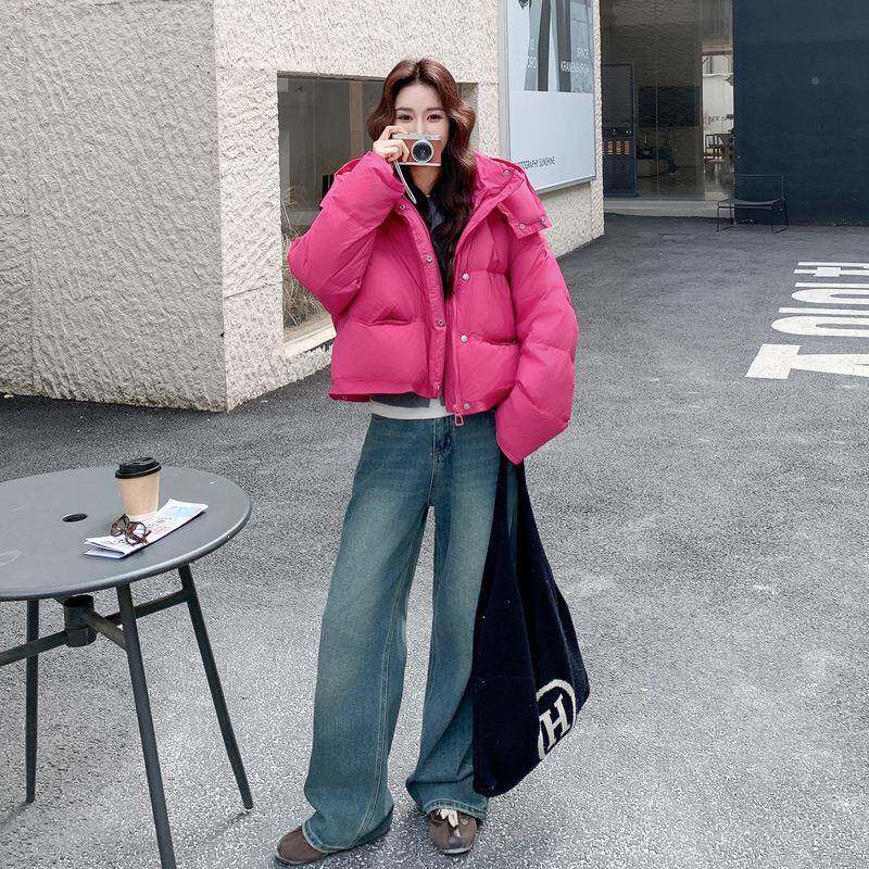 📚 玫红色短款面包服羽绒服外女冬季20b275-M7525新款高级短款鸭绒外