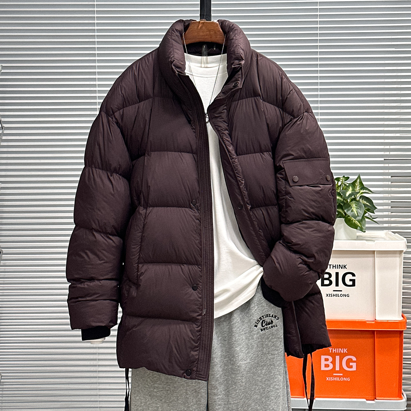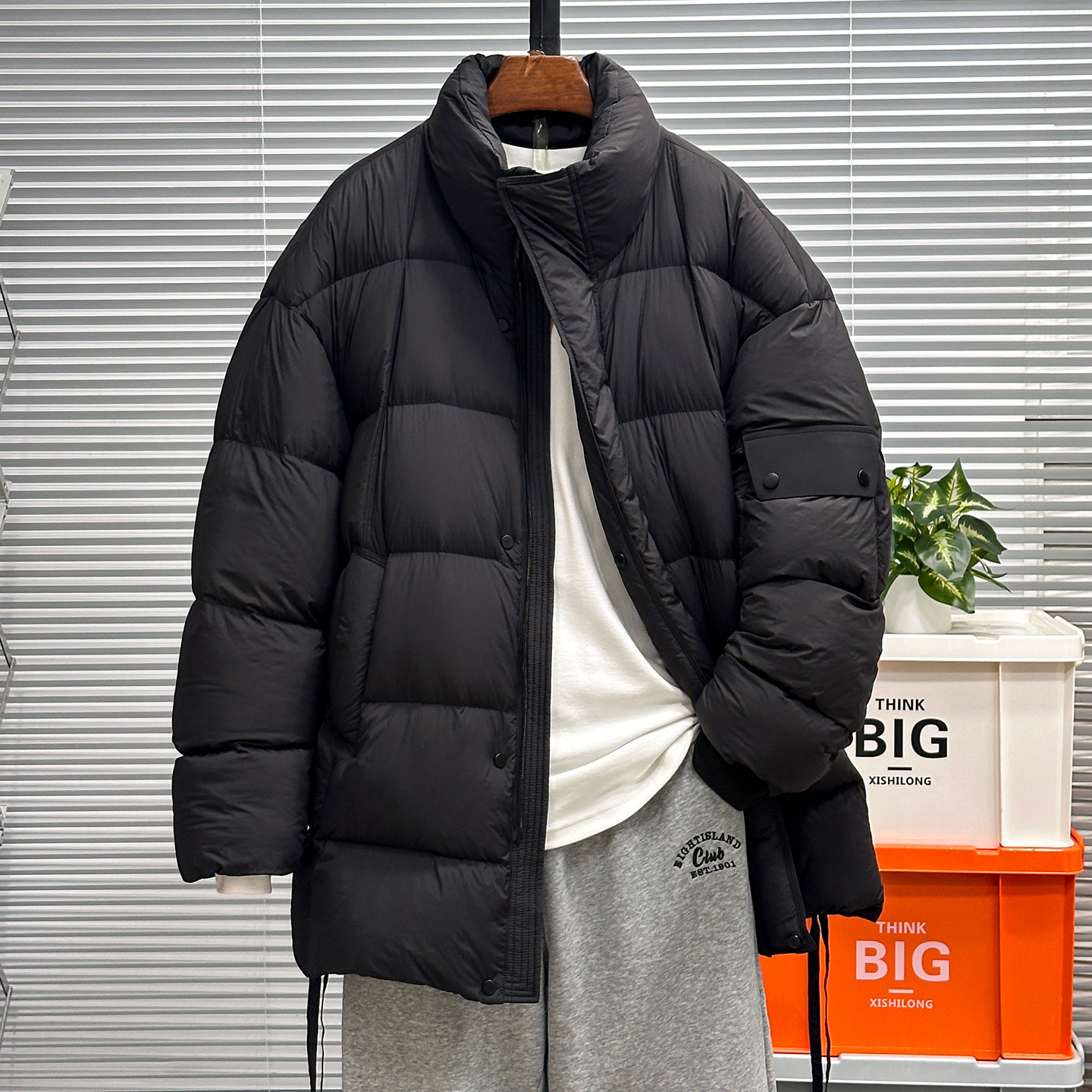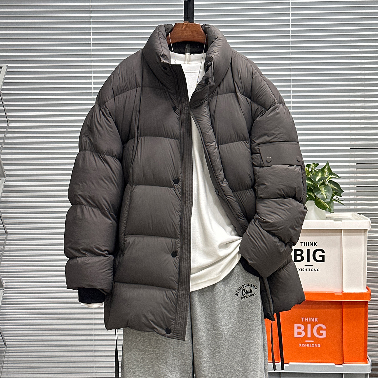 📚 冬季加厚白鸭绒中长款羽绒服男时尚宽松百搭立领高充绒量保暖外套