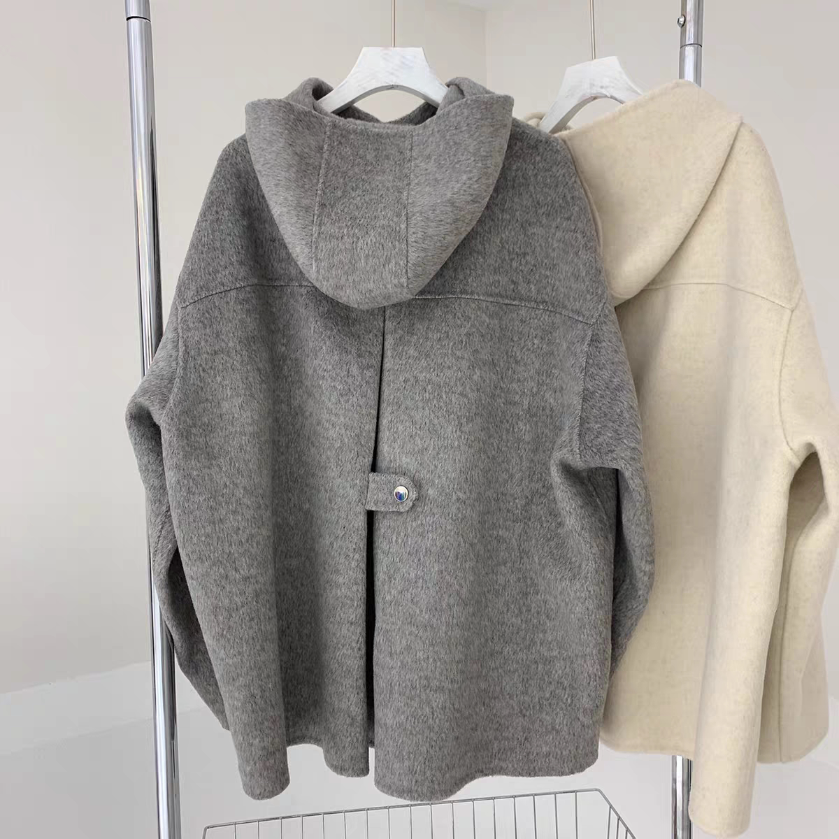 📚 连帽宽松小个子2025年秋冬新款双面羊毛大衣女短款羊毛斗篷外套