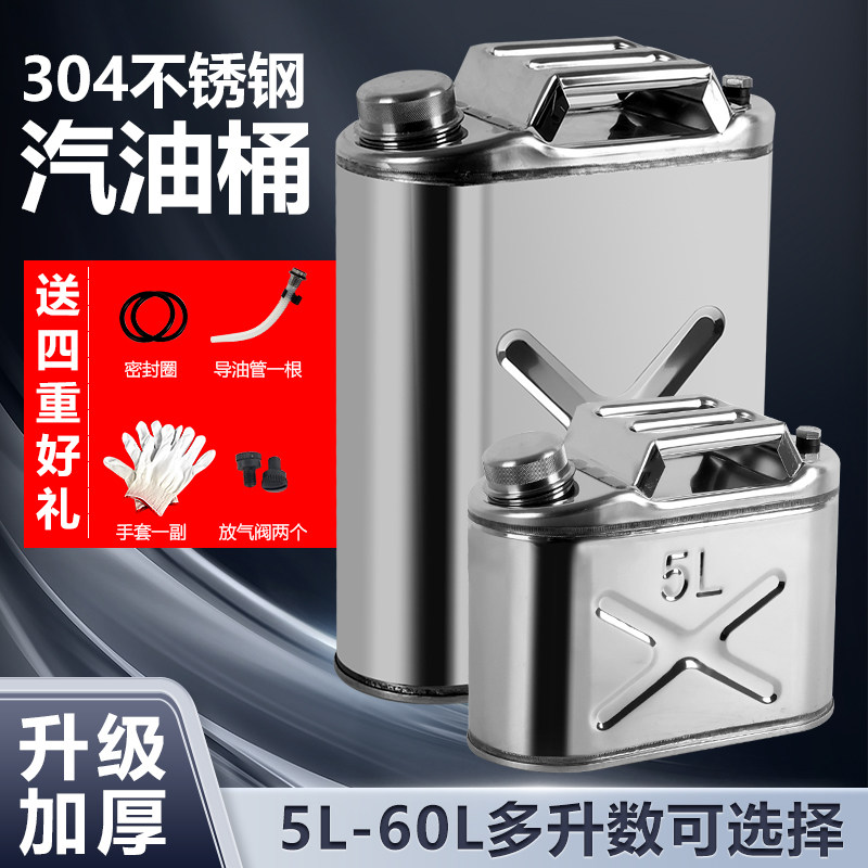 📚 304特厚不锈钢铁油桶60L50L40L30L汽车柴油桶加厚备用油箱汽油桶