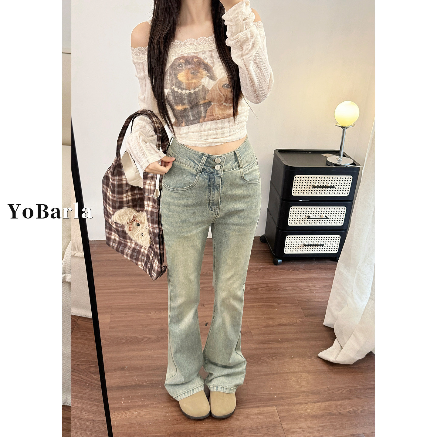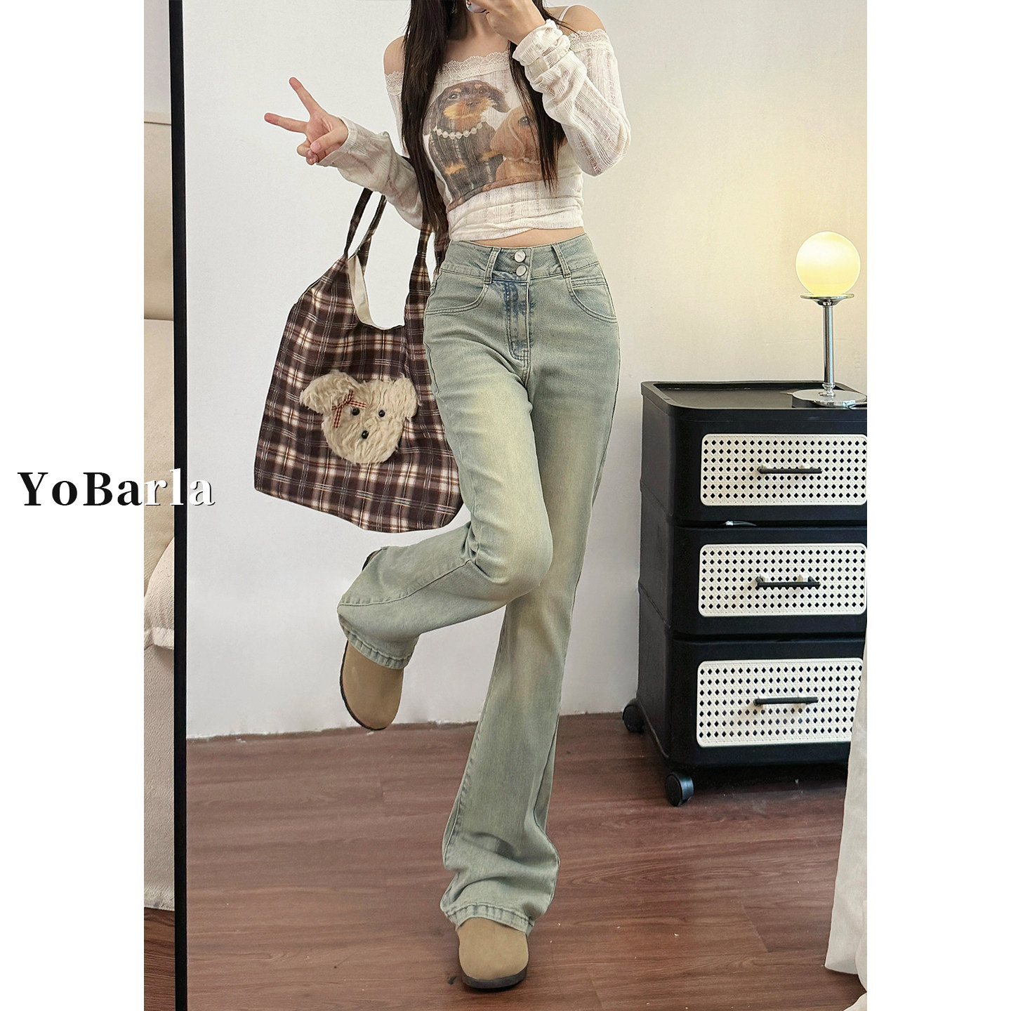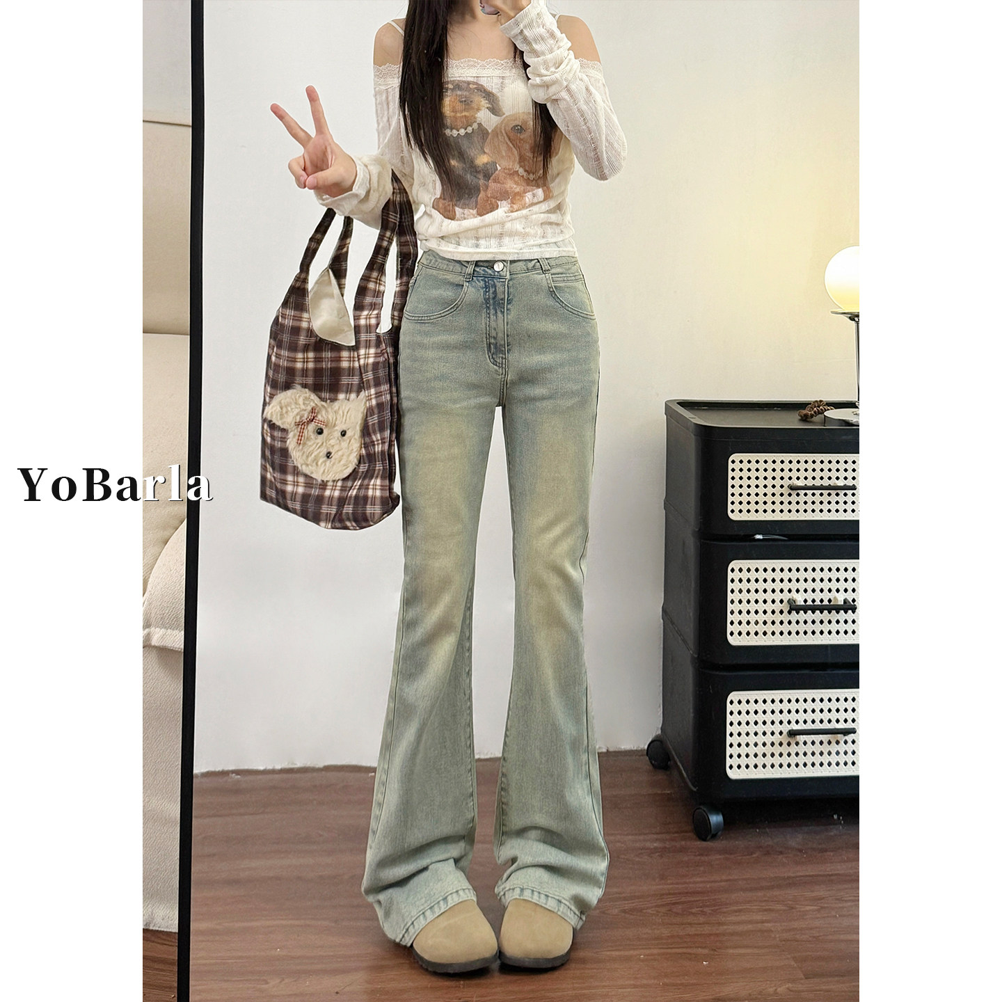💥🔥种草新衣!浅色做旧黄泥染微喇牛仔裤,秋冬显瘦神器👖