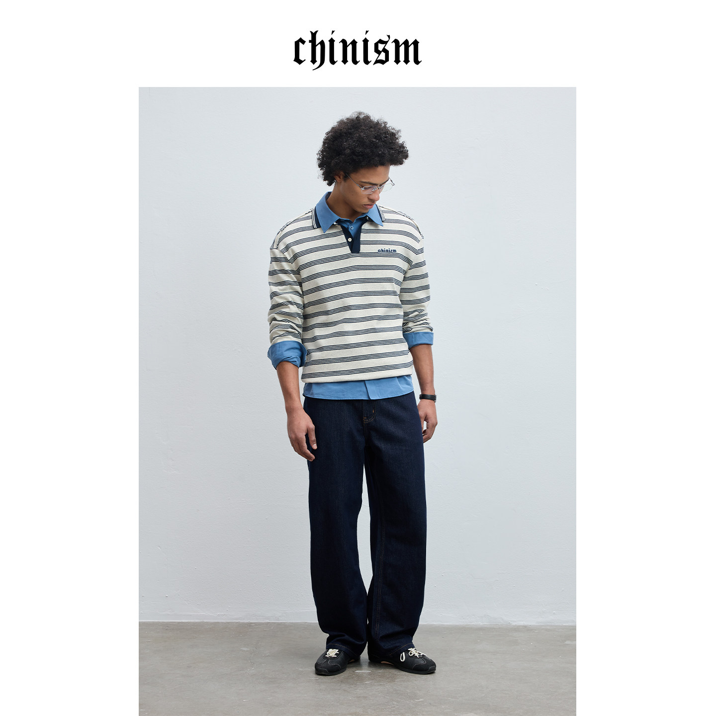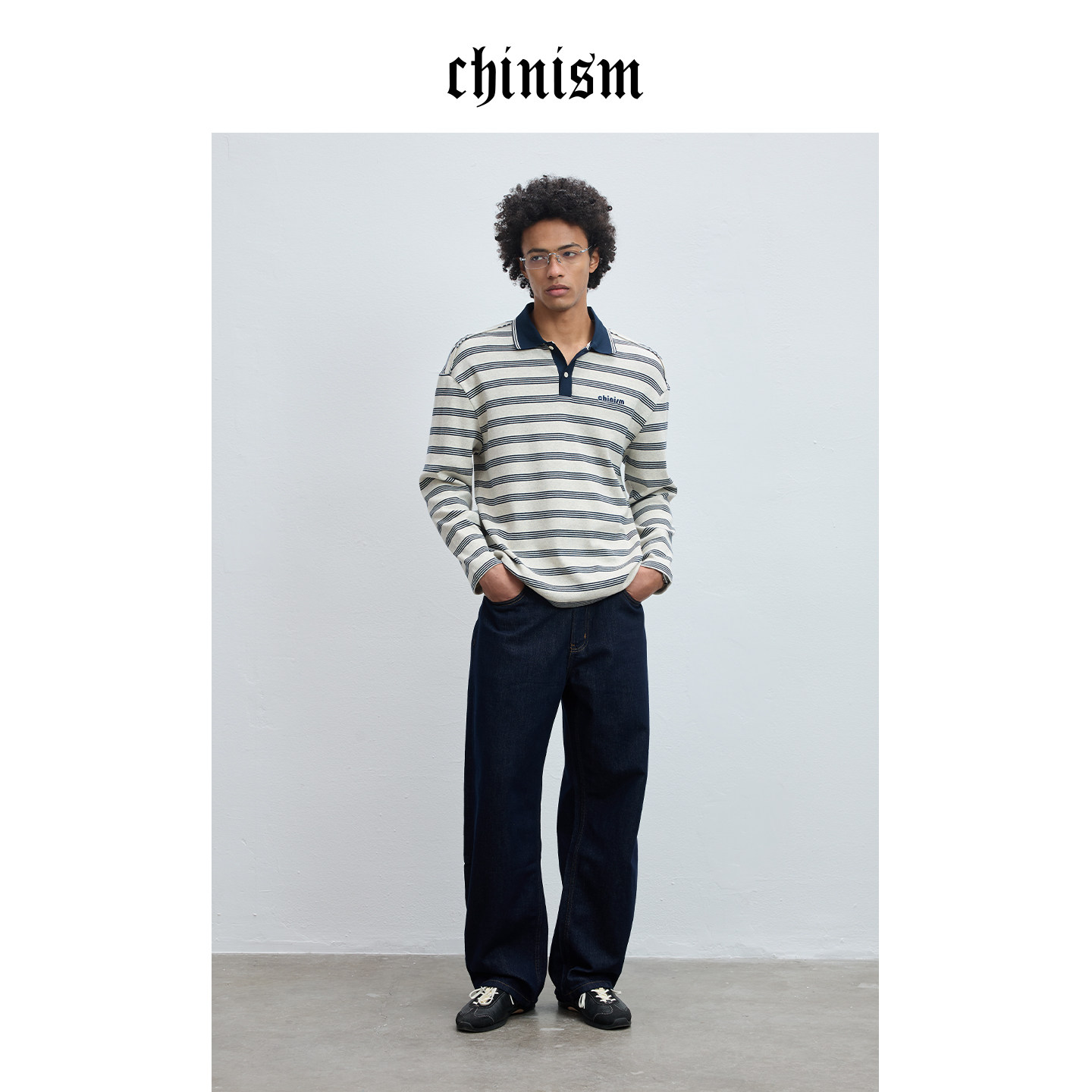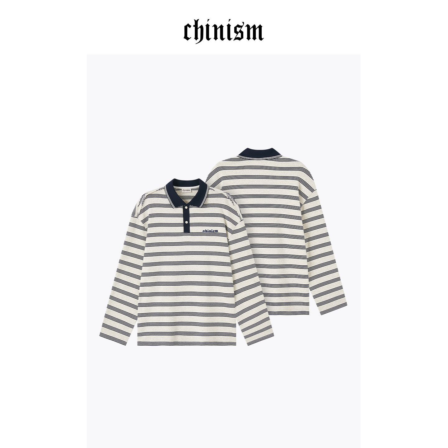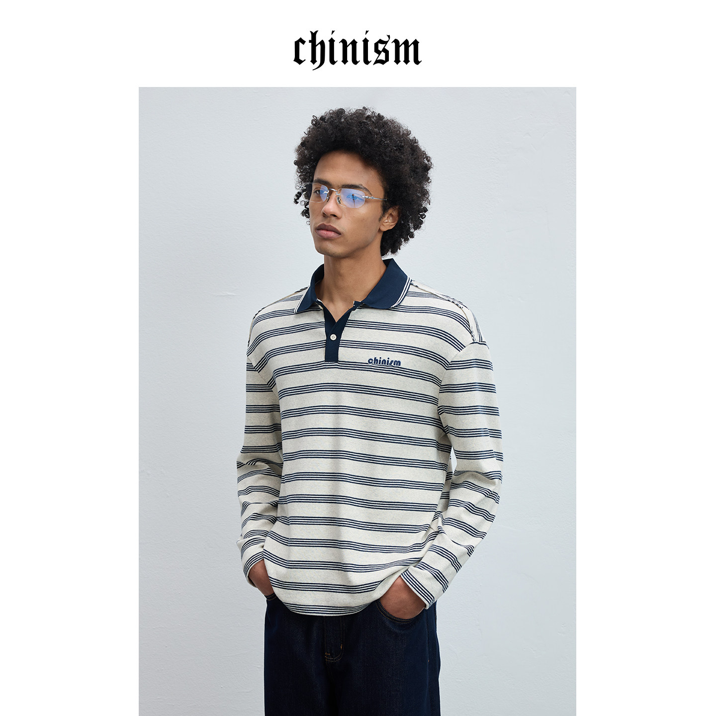 📚 CHINISM丨310G重磅条纹polo衫男2026春季撞色长袖T恤/CXHC13H5044