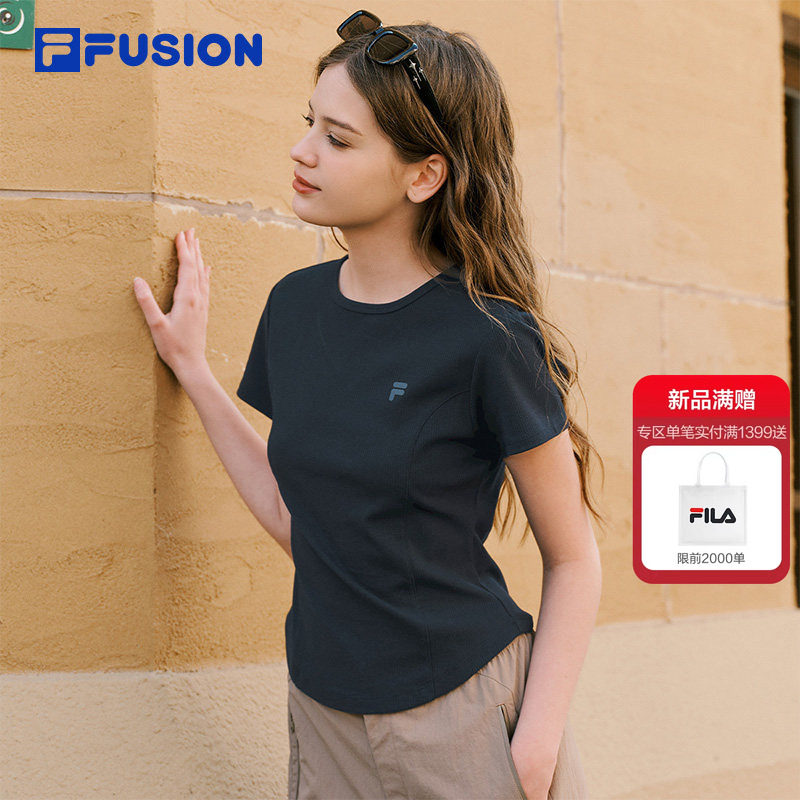 📚 FILA FUSION斐乐潮牌女子针织短袖衫2026夏季新款休闲简约紧身T恤