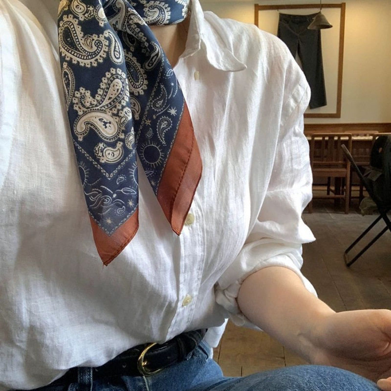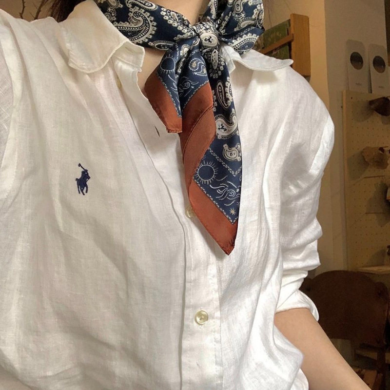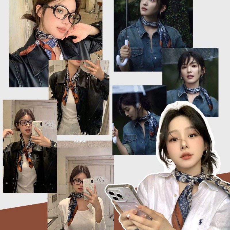 📚 新款章若楠同款丝巾女春夏高级好仿真丝复古腰果花时尚百搭领巾搭
