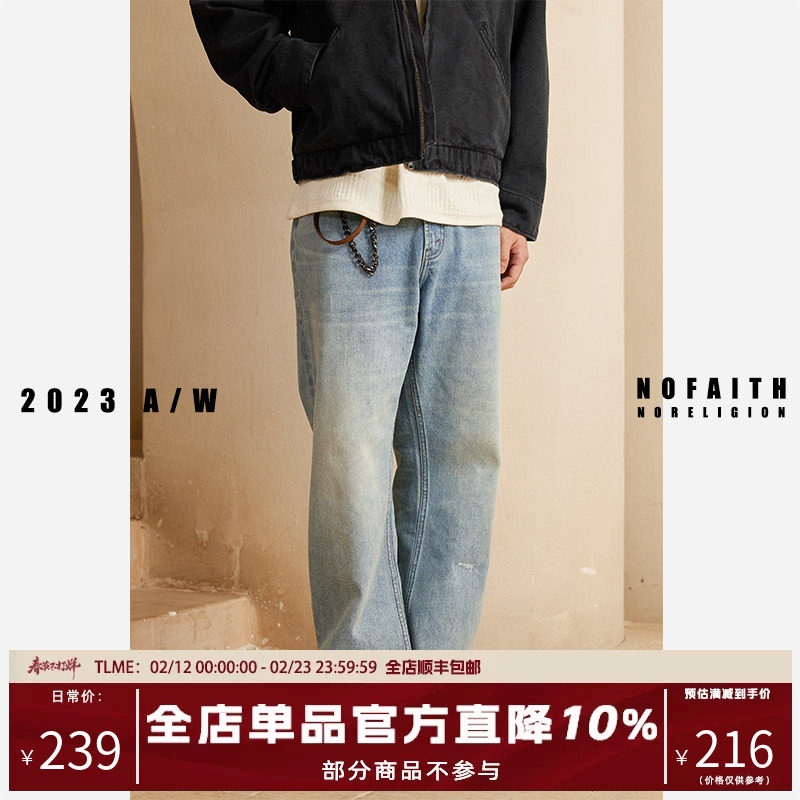 📚 NOFAITH水洗蓝色牛仔裤男517微喇做旧日系复古裤子男无信仰01-50