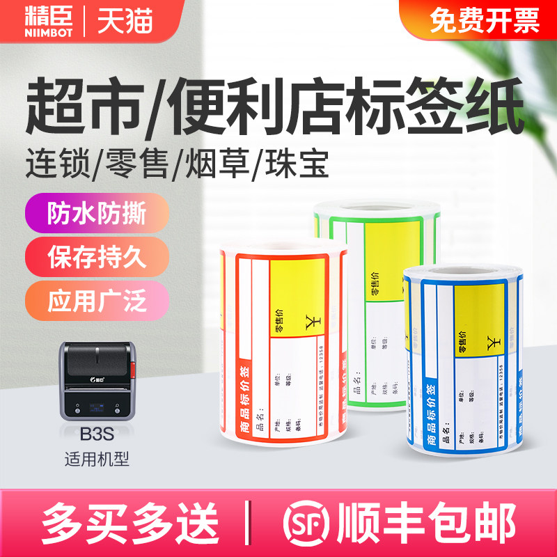 📚 【B3S/B31专用 超市】精臣标签打印纸热敏不干胶产品标价签商超商品货架烟草医药零售美妆母婴水果店条码贴纸