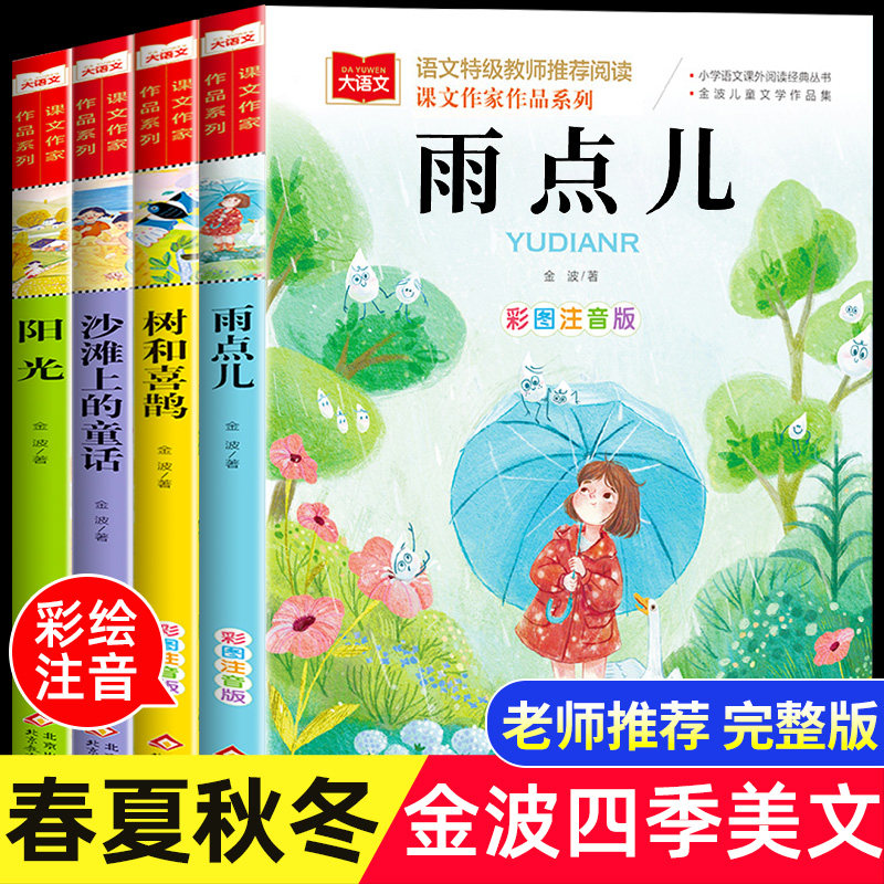 📚 金波四季童话美文注音版全套4册 雨点儿 阳光 树和喜鹊 沙滩上的童话 一年级阅读课外书必读老师推荐经典书目儿童诗选带拼音的书籍