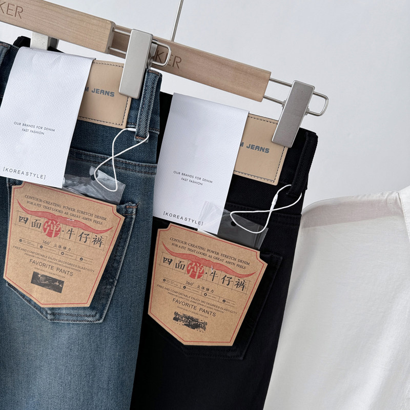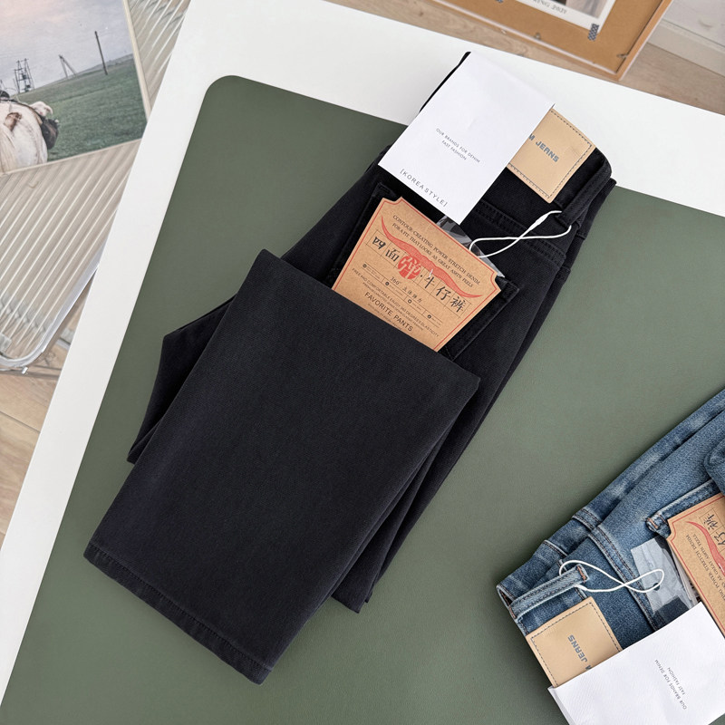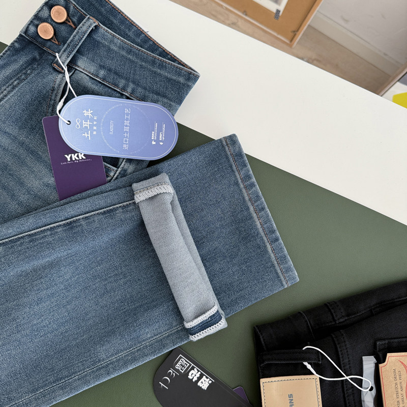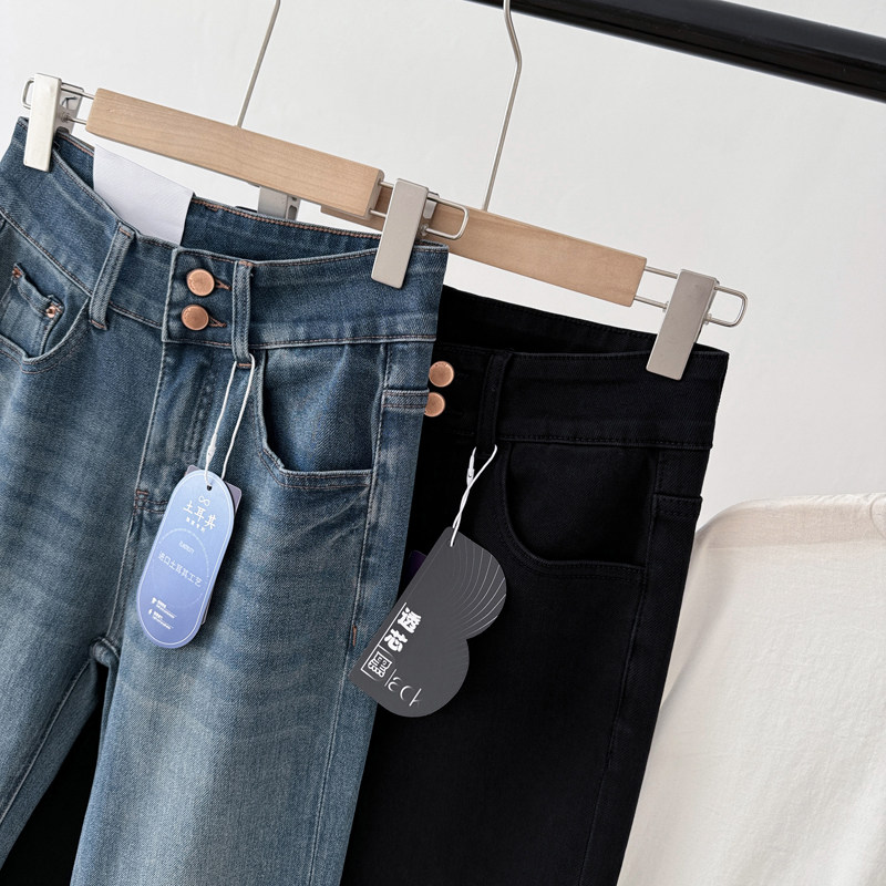 📚 显瘦小直腿!九分四面弹~ 高腰两扣 秋显高法棍烟管裤直筒牛仔裤