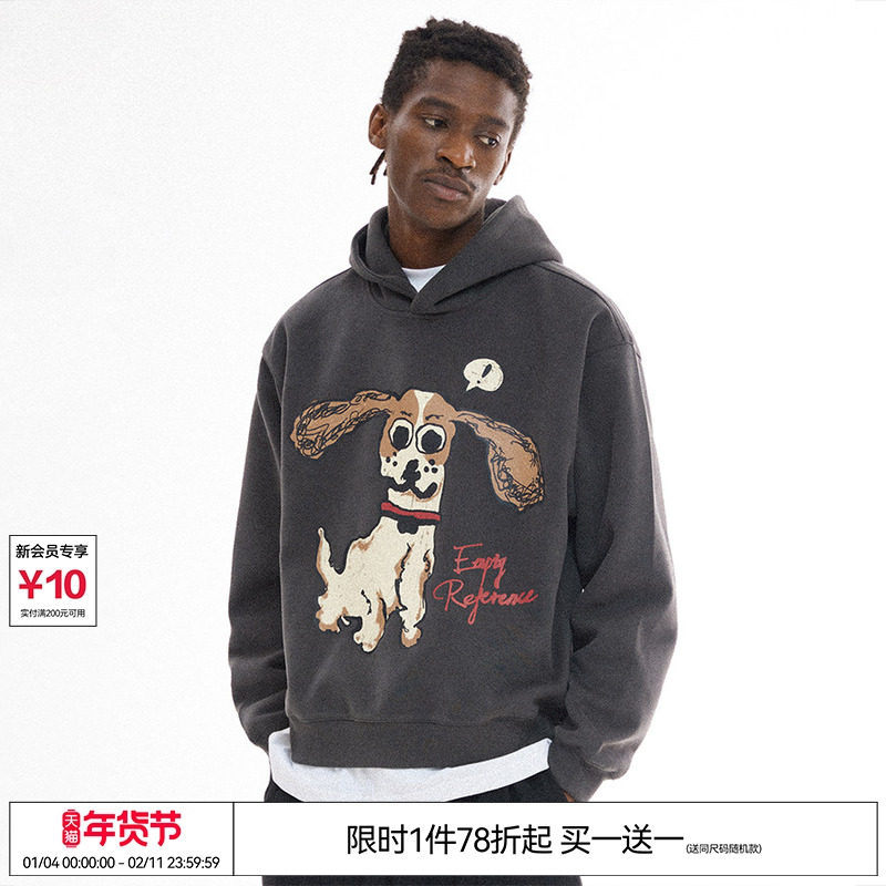 07¥ HU293 FGpLU83RQTJ¥ https://m.tb.cn/h.7Im7j1K EMPTY REFERENCE美式复古原创手绘可爱小狗宽松黑色连帽卫衣外套 --------------------- 【原售价】369元 【现售价】299元。