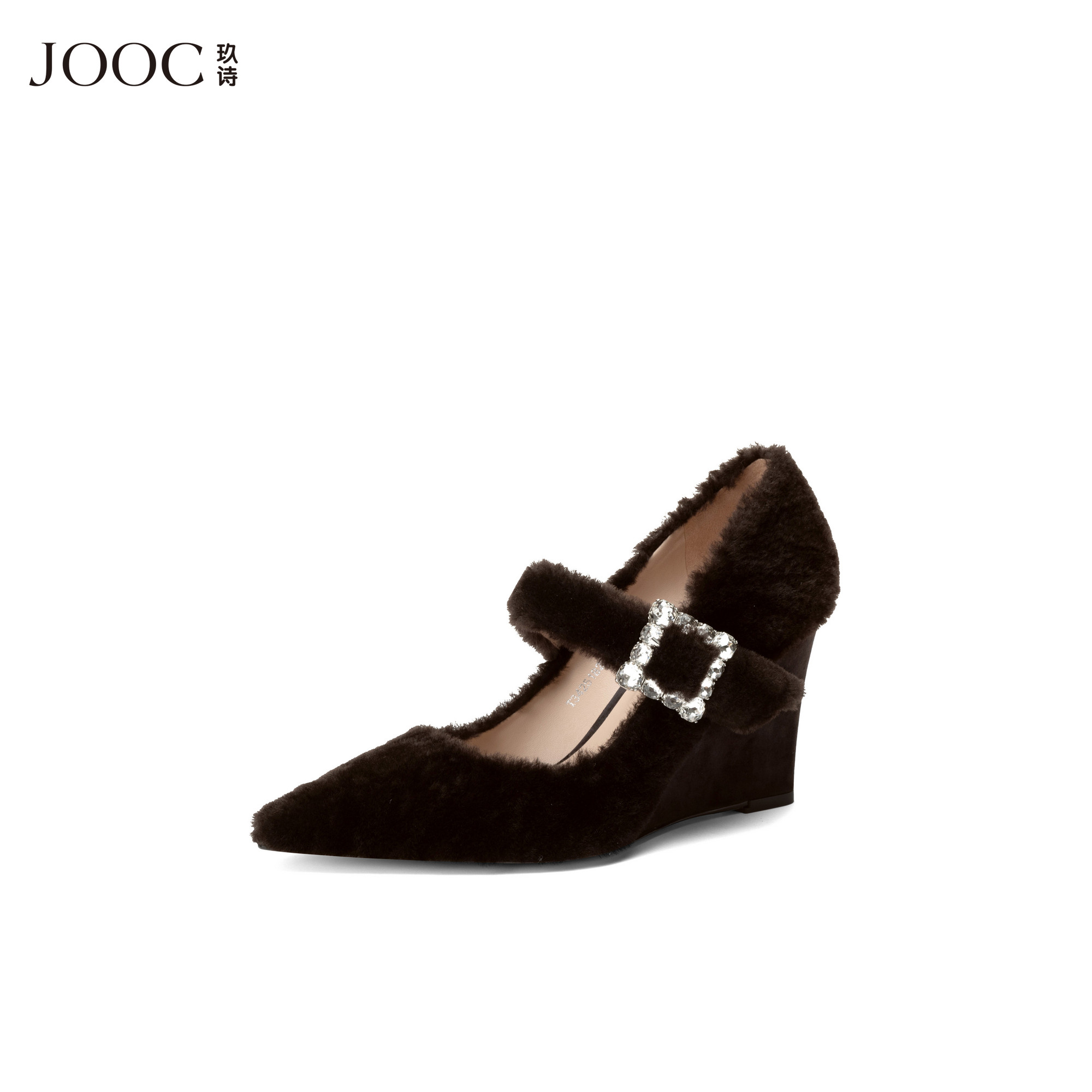 📚 JOOC玖诗一字式扣带坡跟增高单鞋女2026春季新款水钻方扣玛丽珍鞋