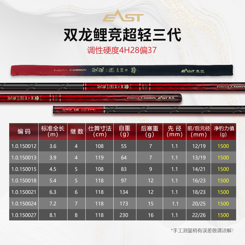 📚 东区钓具双龙鲤竞超轻4H三代钓竿高碳小综合竿轻量鲫鱼竿手竿台钓