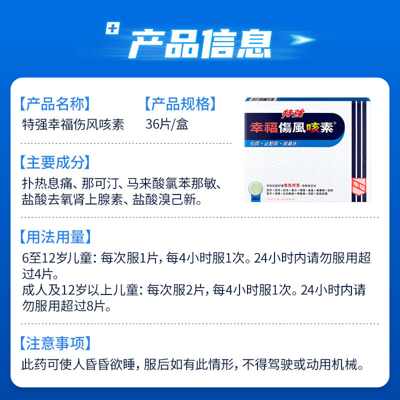 📚 【自营】中国香港幸福特强伤风咳素36片止咳咳嗽退烧对乙酰氨基酚