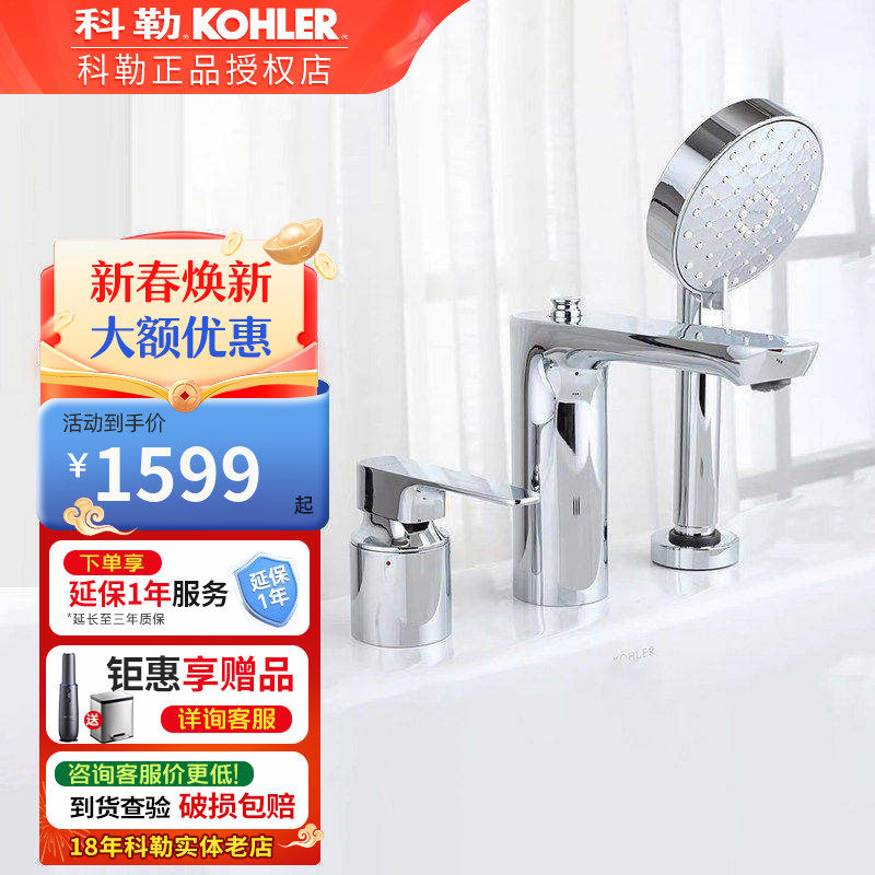 📚 科勒龙头KOHLER三孔缸边浴缸龙头冷热水手持淋浴花洒套装K-72330T