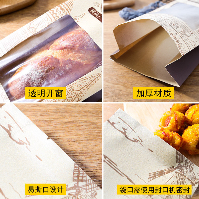📚 俄罗斯大列巴包装袋长条法棍面包袋子加厚烘焙包装袋开窗牛皮纸袋