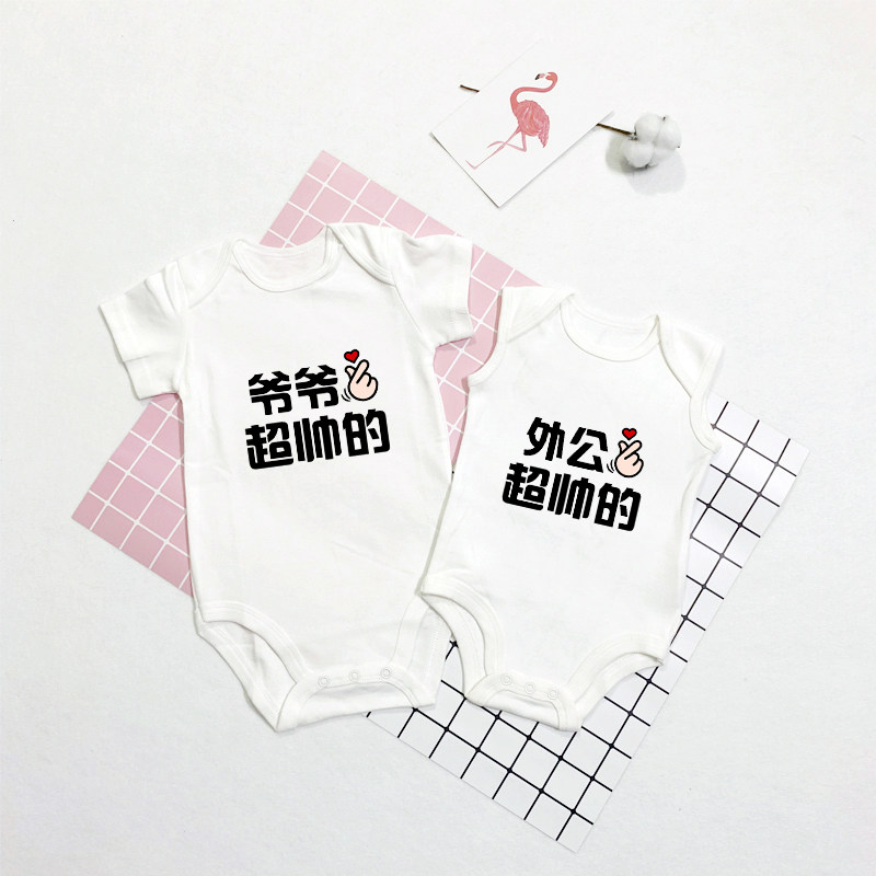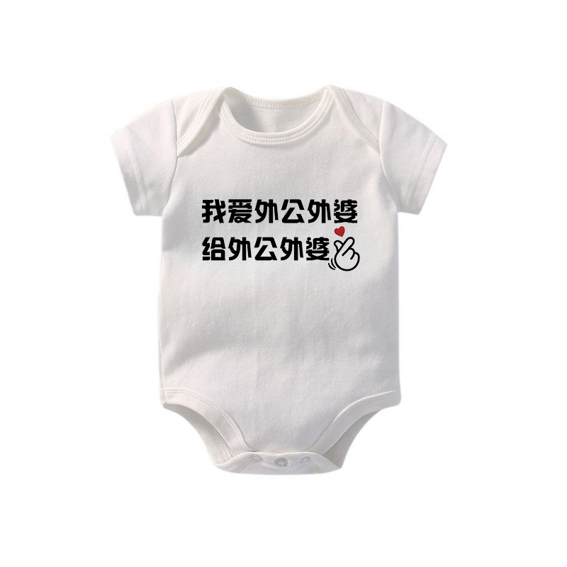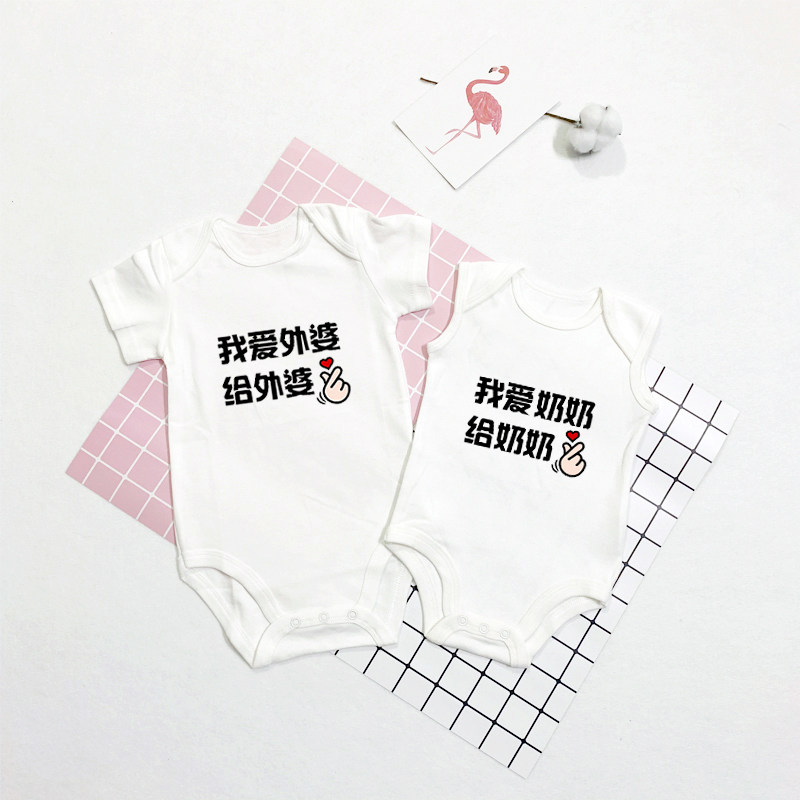 📚 我爱外婆奶奶爷爷外公婴儿连体哈衣男女儿童包屁衣短袖T恤夏纯棉