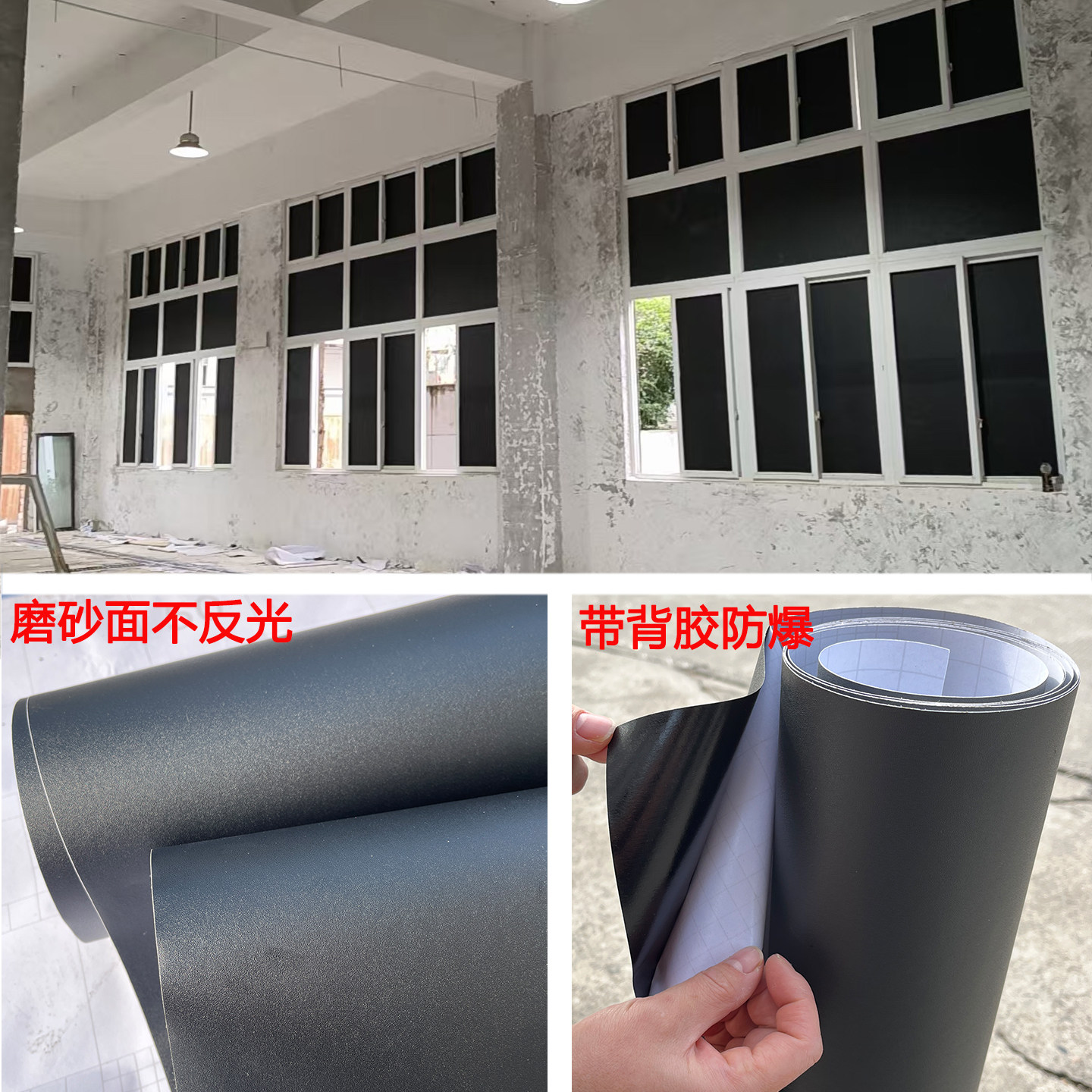 📚 黑色贴膜遮光贴纸工厂仓库玻璃隔断遮挡物体不透光遮阳防窥窗户纸