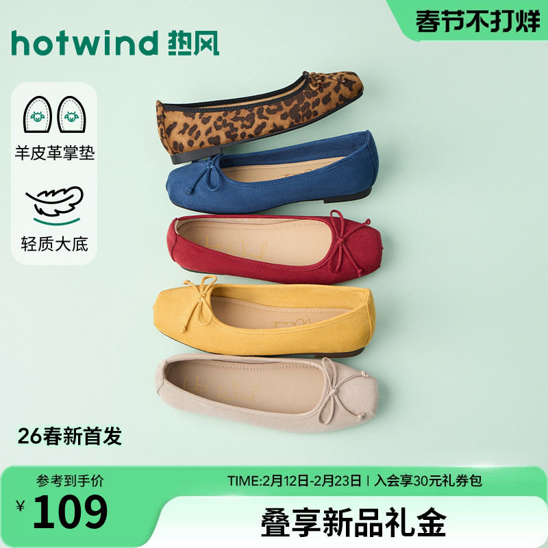📚 热风黄色浅口单鞋女2026年春季新款百搭软底休闲女鞋通勤薄底鞋子