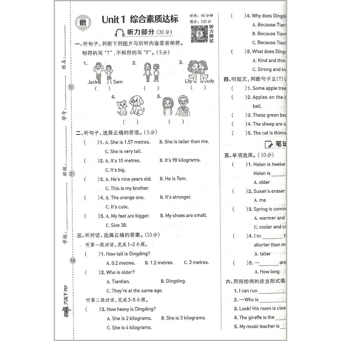 📚 荣德基典中点英语六年级下册英语人教版综合应用创新题课堂小学同步训练单元达标检测试卷练习题册课时课内外复习资料书典点天天练