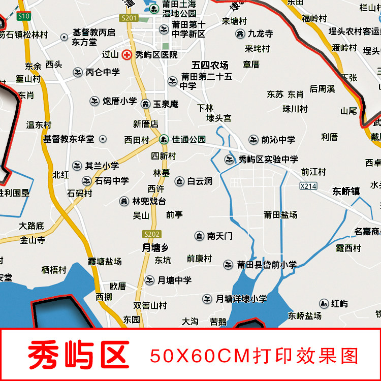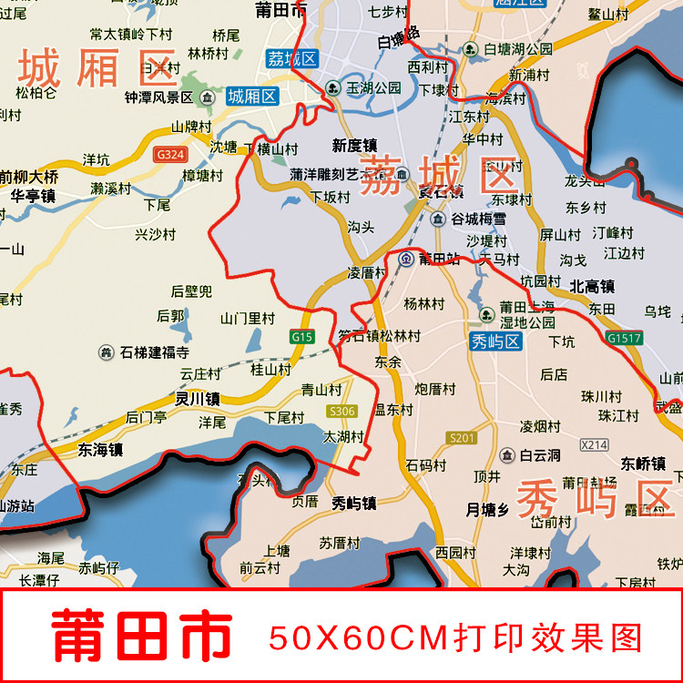 📚 2026新版莆田市涵江城厢荔城秀屿区仙游县地图海报装饰画包邮