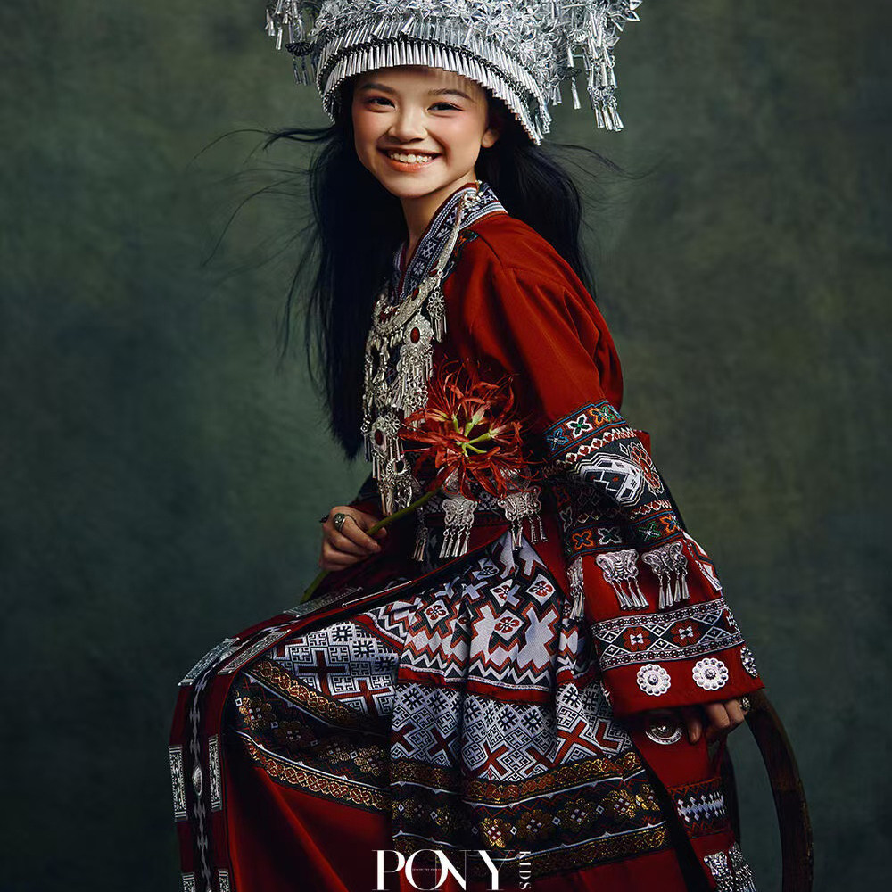 📚 新款红色阿卯儿童苗族服装少数民族土家族女童演出服云南湘西摄影