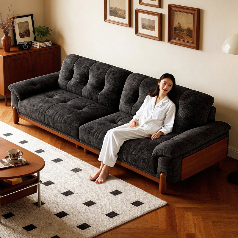 📚 拉芙菲原木风棉麻布艺沙发可拆洗实木小户型雪尼尔直排客厅沙发