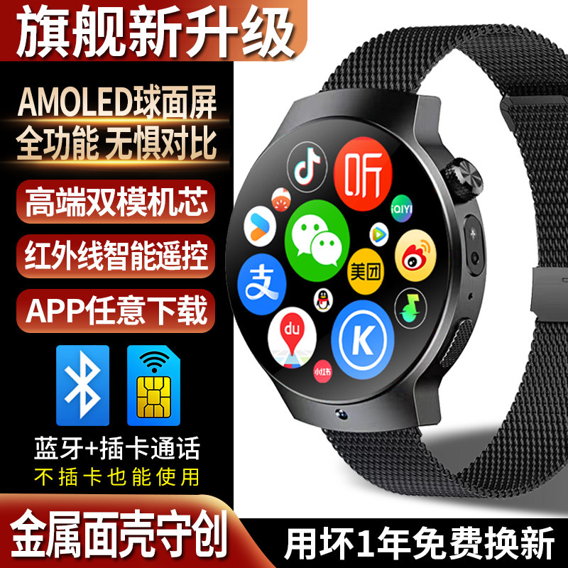 📚 双模5G圆屏全网通安卓电话手表蓝牙通话智能手表红外线遥控可插卡下载APP成人男士款GPS定位学生初高中生手环