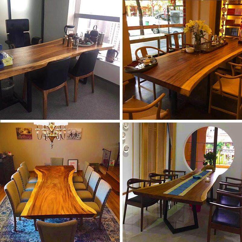 📚 来源厂家奥坎实木大板茶几办公桌办公办公桌黑檀木核桃原木花点整