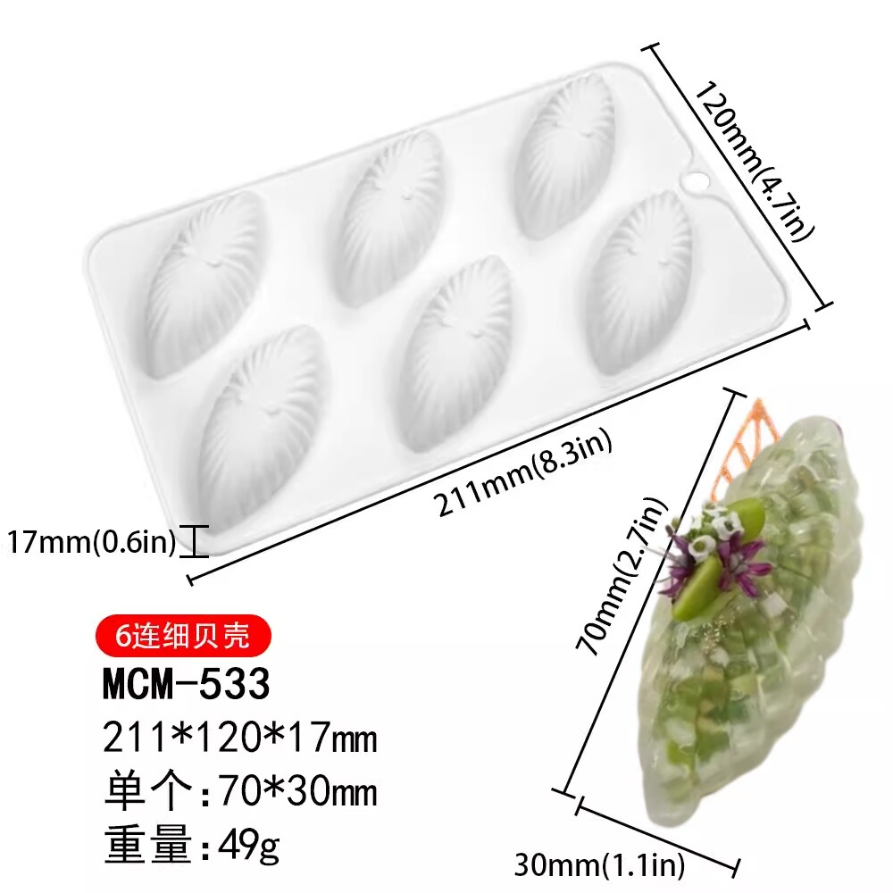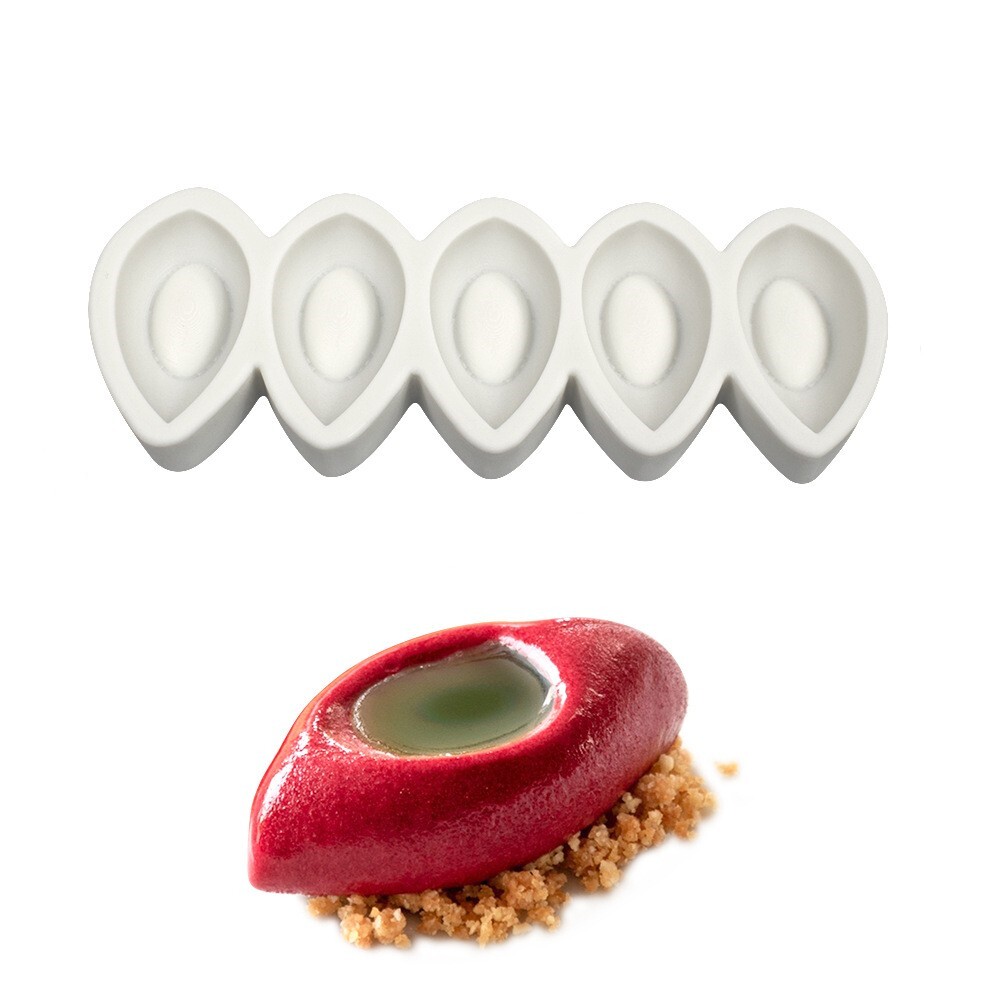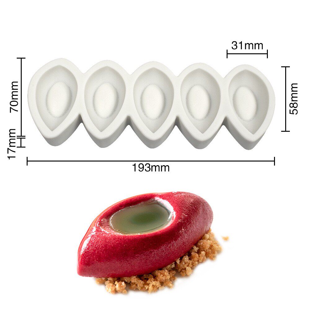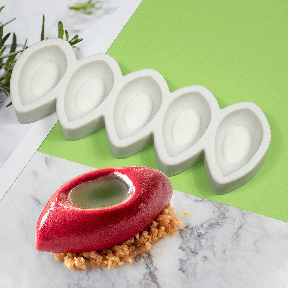 📚 5连凹橄榄型慕斯模具创意雪帕造型硅胶磨具甜品点心法式立体水果
