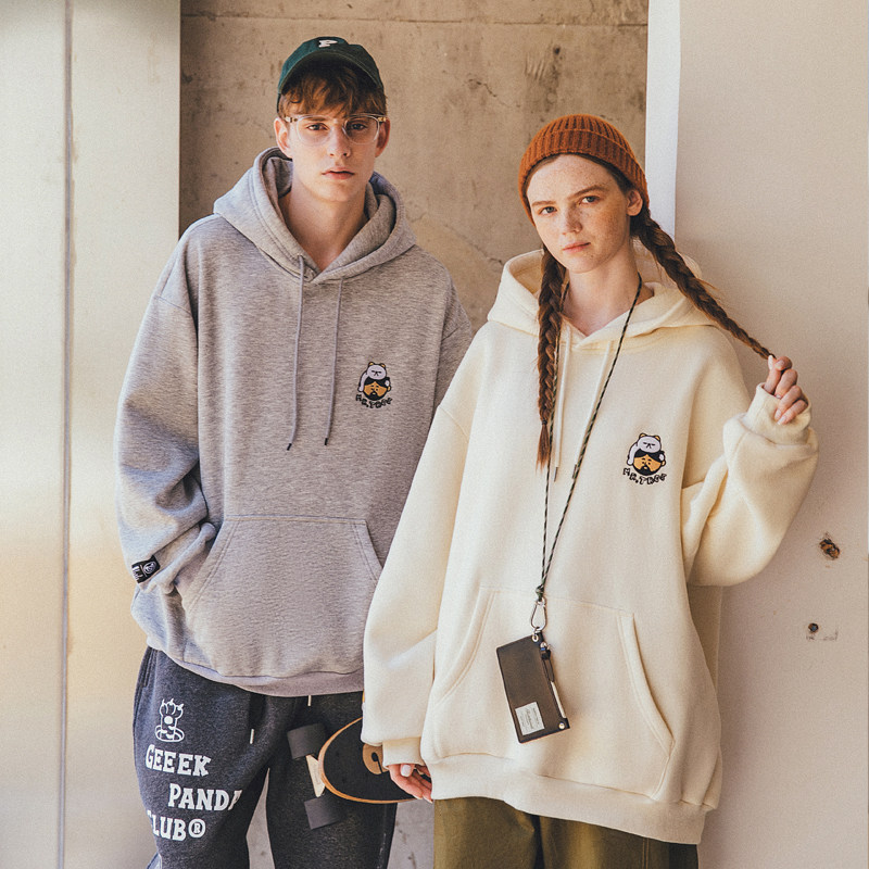 📚 韦恩泽维尔大码连帽白色卫衣男女冬季加绒加厚宽松刺绣情侣款8077