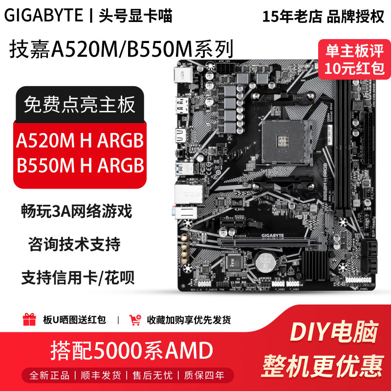 📚 技嘉A520M H ARGB/B550 H ARGB主板搭配AMD5000系处理器CPU套装