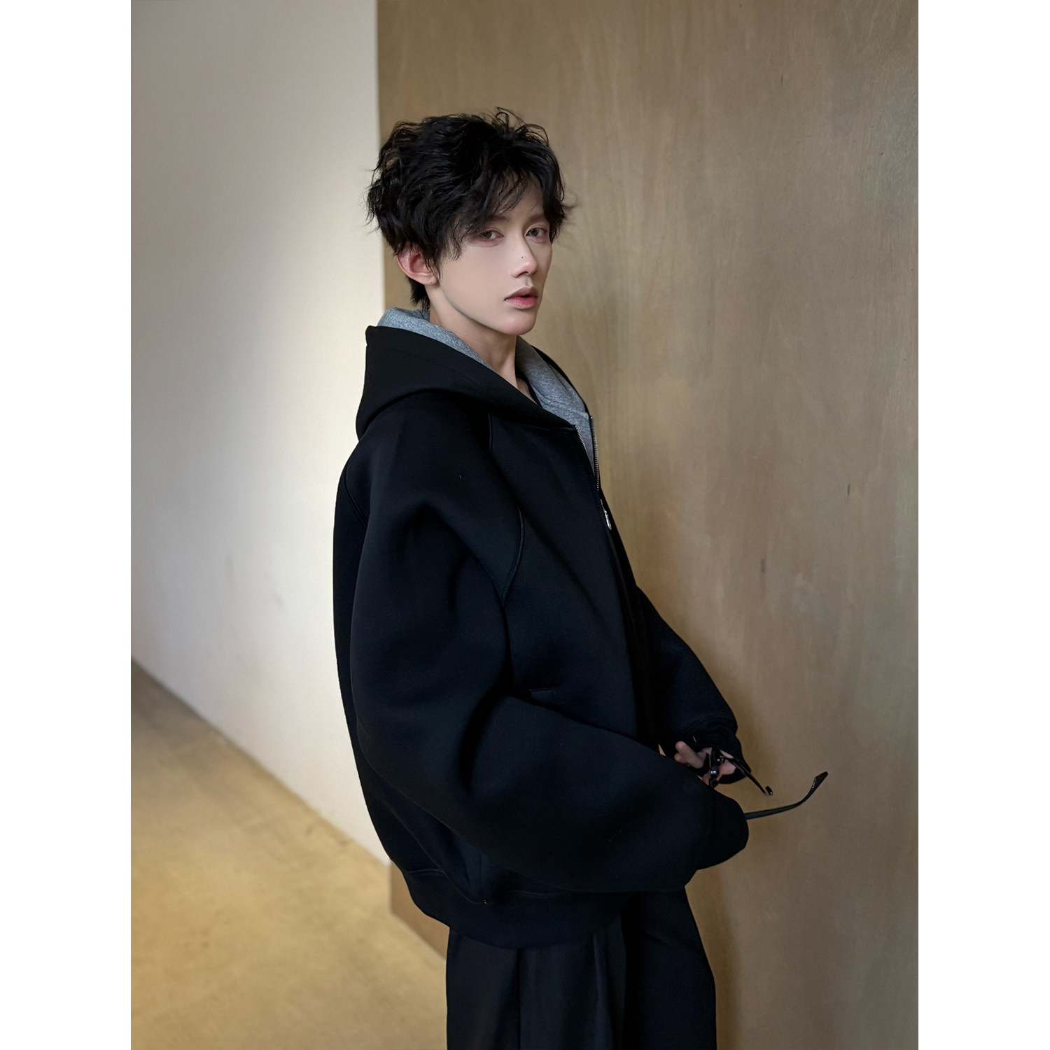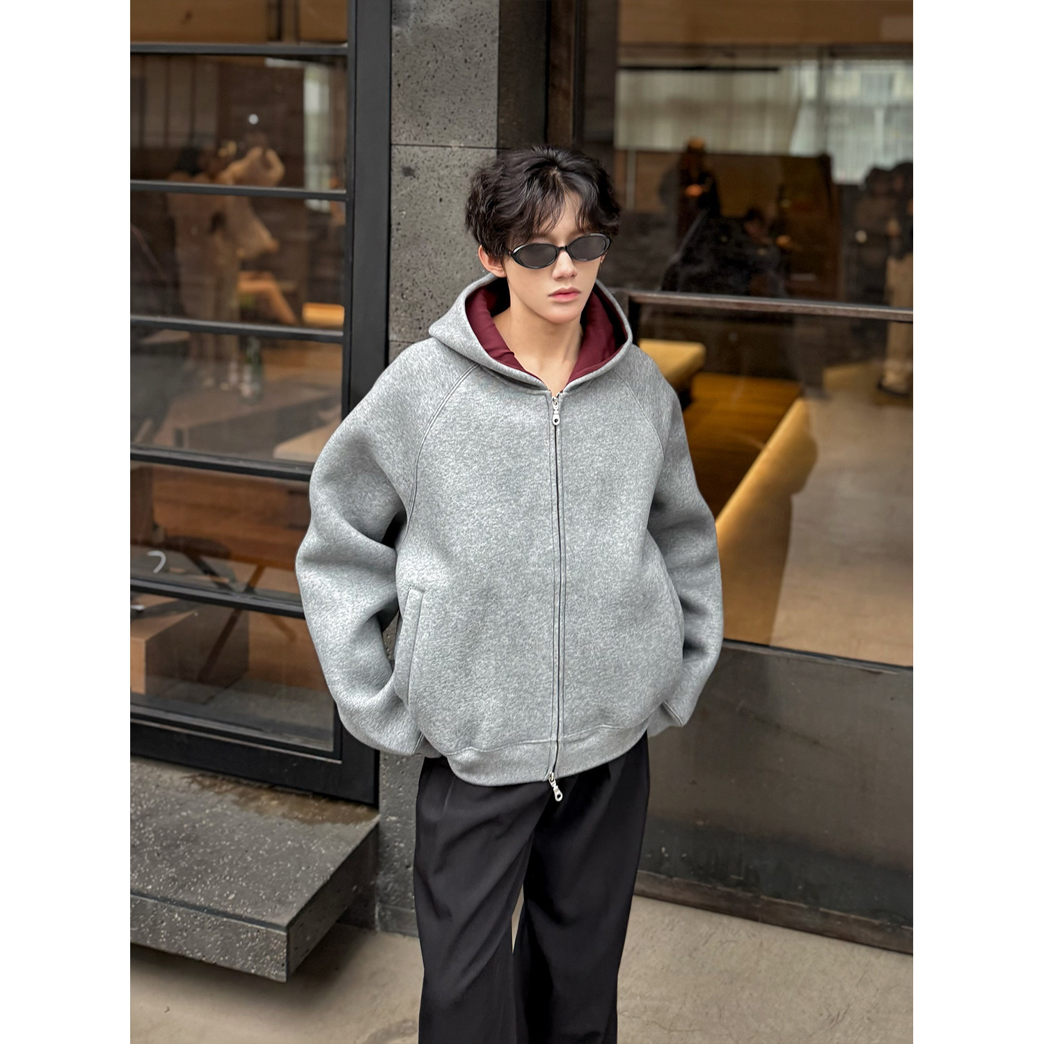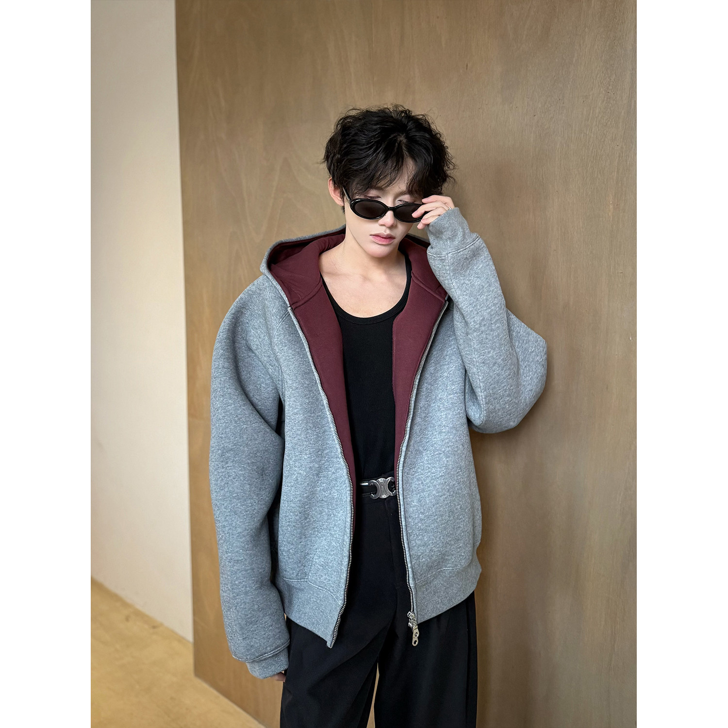 📚 oclin帝王红内空气层卫衣男款秋季高级感连帽衫cleanfit开衫外套