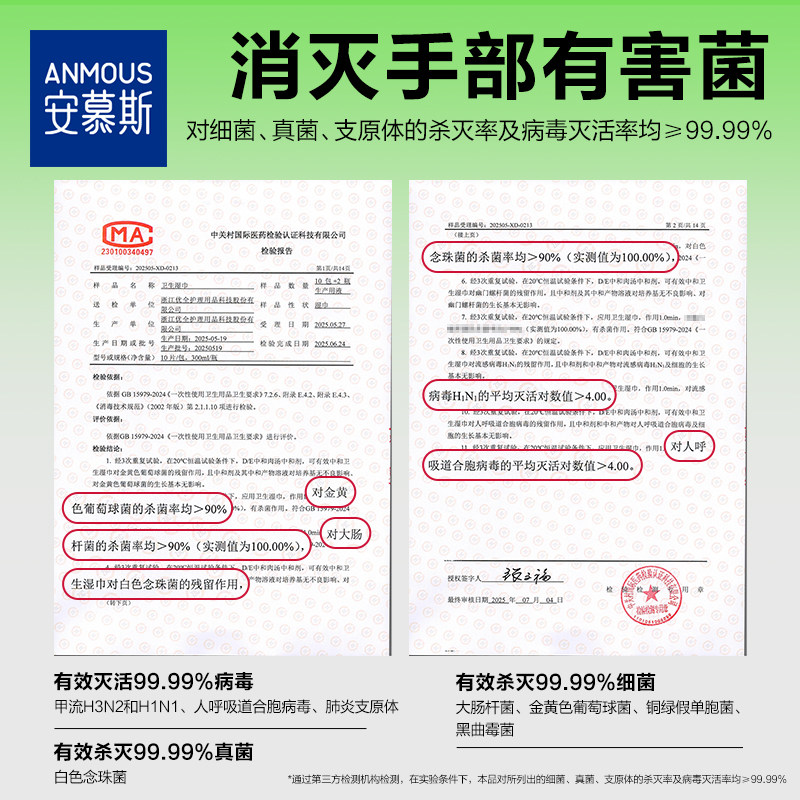 📚 安慕斯婴幼儿童消毒手口湿巾迷你便携0酒精甲流病菌消毒杀菌湿巾