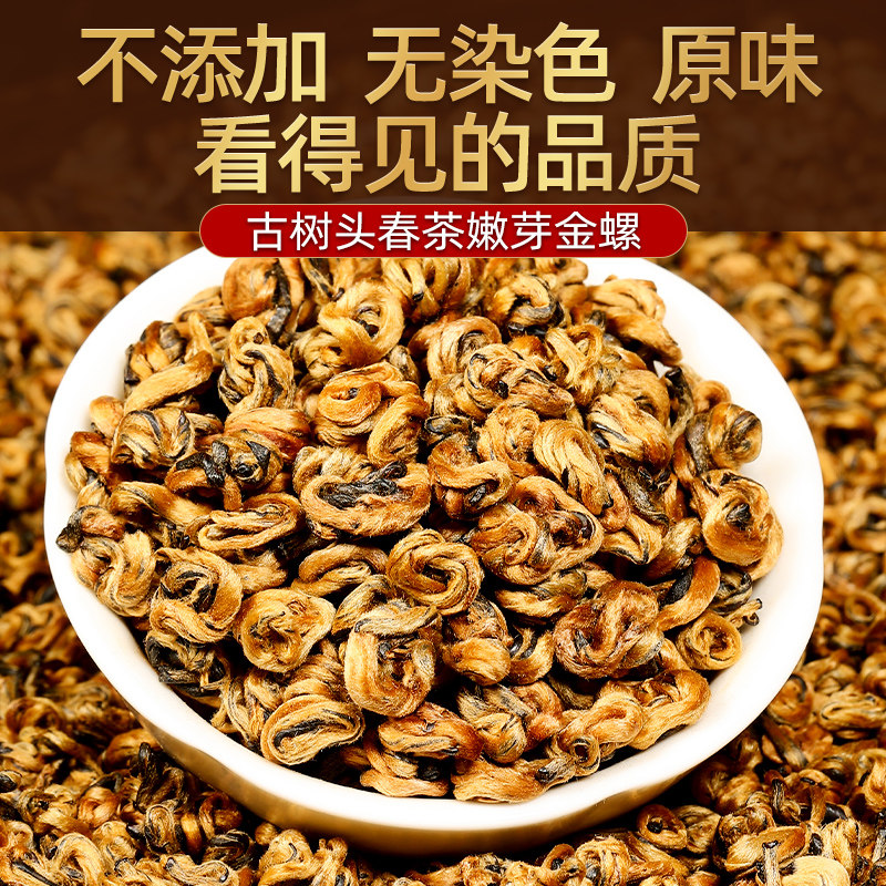 📚 滇红茶金螺特级金丝滇红古树茶云南凤庆茶叶黄金螺单芽全嫩芽送礼