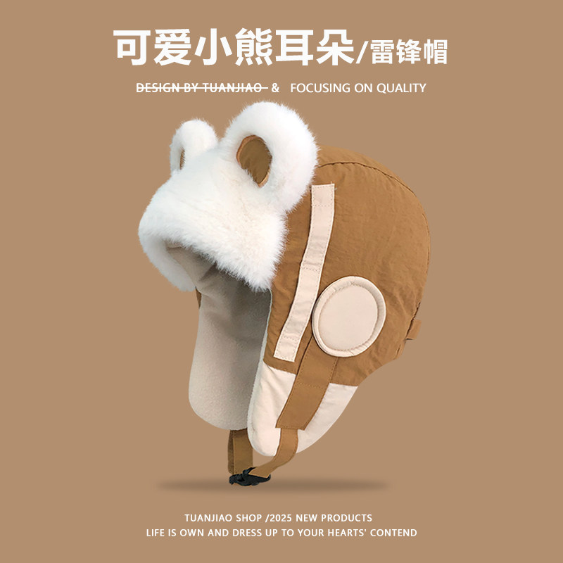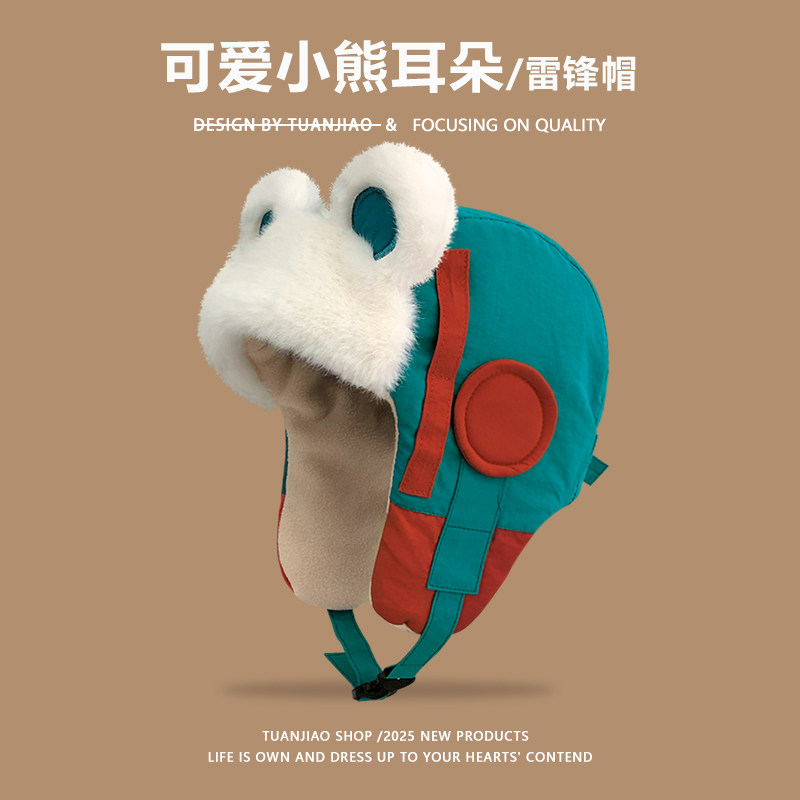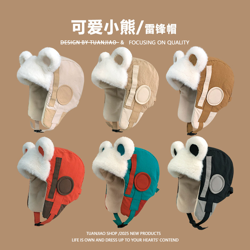 👶冬季里的温暖小秘密,这款可爱小熊耳朵雷锋帽女冬季加绒加厚保暖棉帽子,真的是我近期的心头好!💓